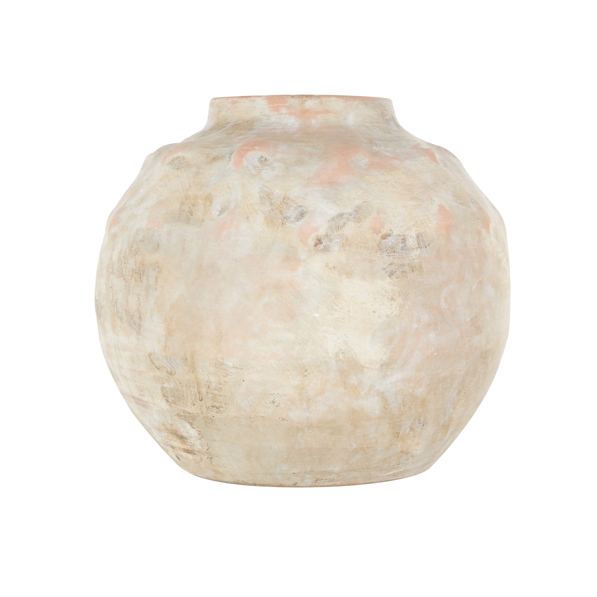 Beige Ceramic Antique Short Wide Decorative Vase with Shades of Pink