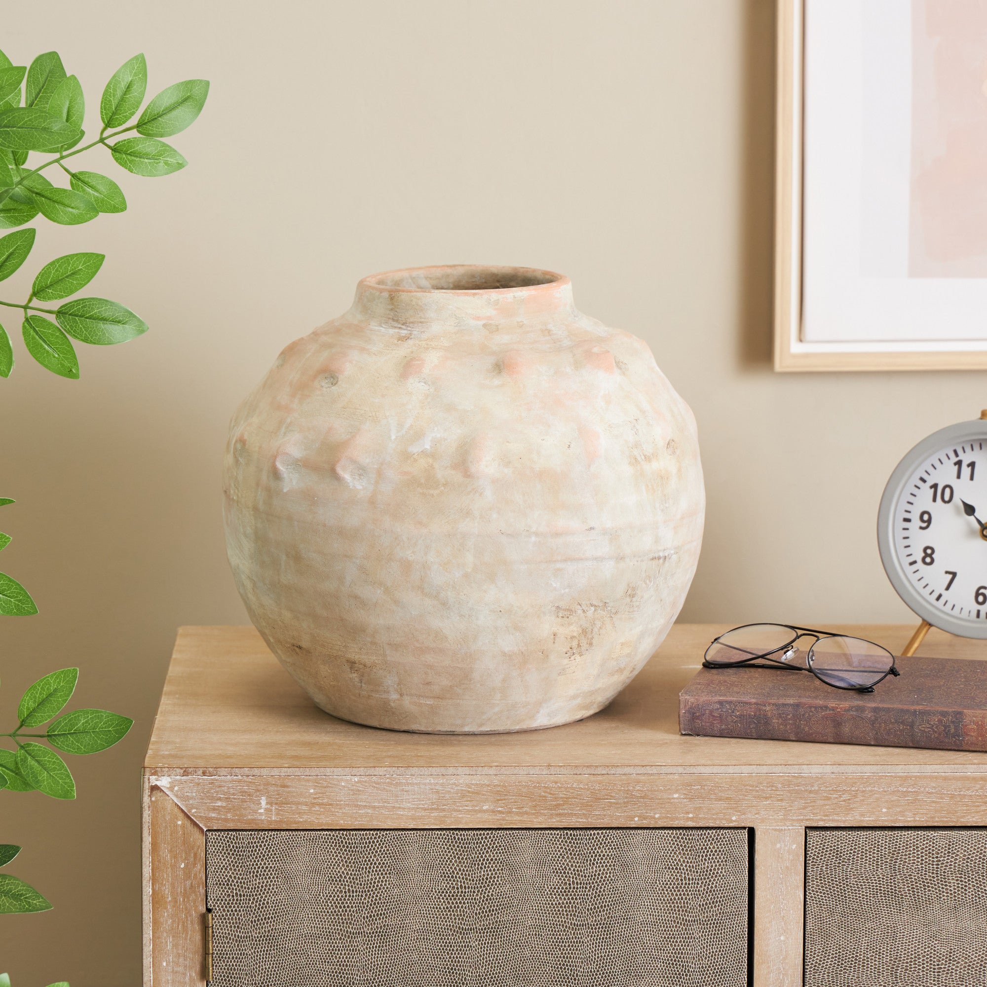 Perfect for living rooms or dining tables, this centerpiece vase enhances your home's aesthetic appeal. Designed with felt or rubber stoppers at the base that prevent scratching furniture and table tops, as well as sliding around. This item ships in 1 carton. Ceramic vase makes a great gift for any occasion. Suitable for indoor use only. This item ships fully assembled in one piece. This is a single vase. Rustic style. Vase has a 4.60 in mouth opening.
