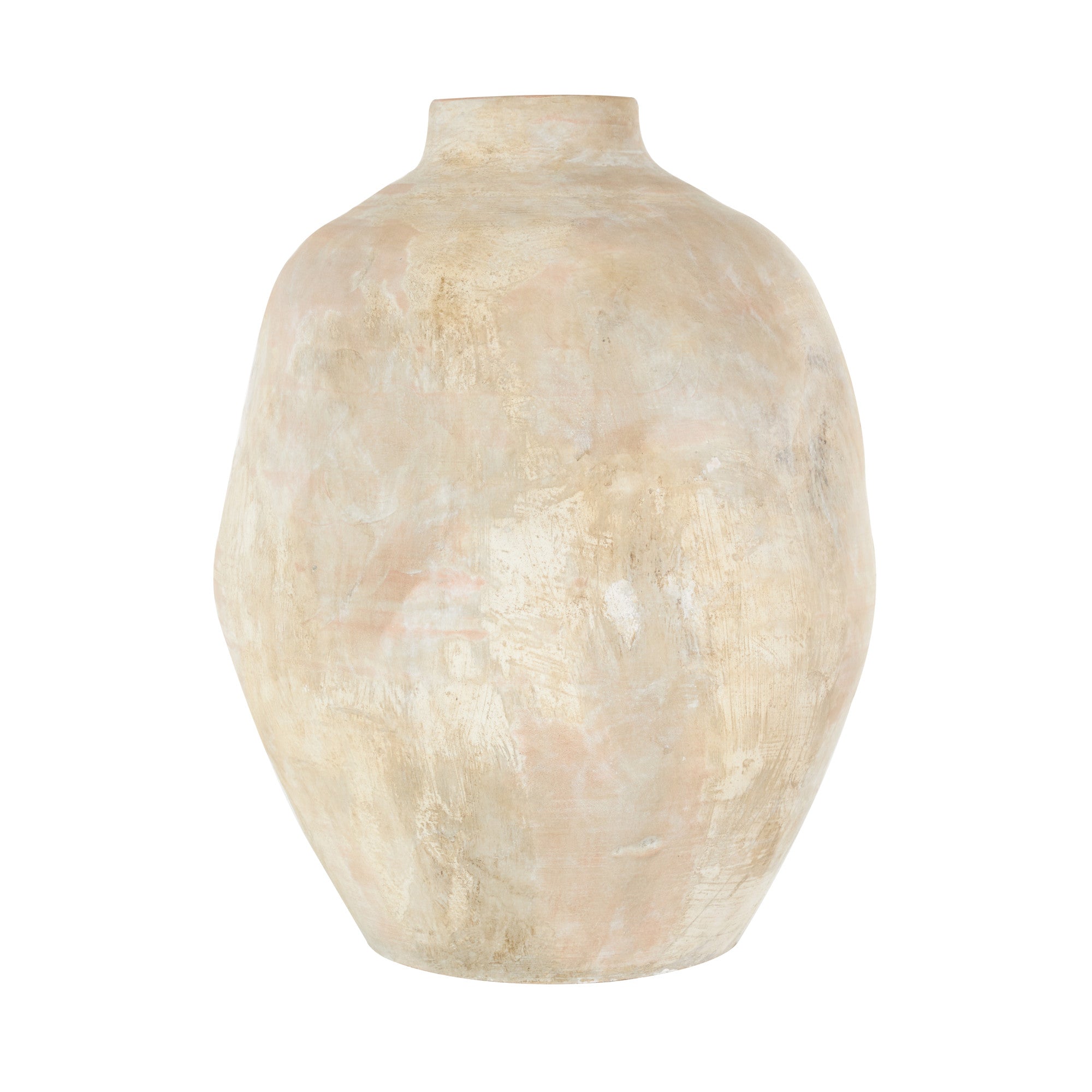 Beige Ceramic Antique Wide Decorative Vase with Shades of Pink