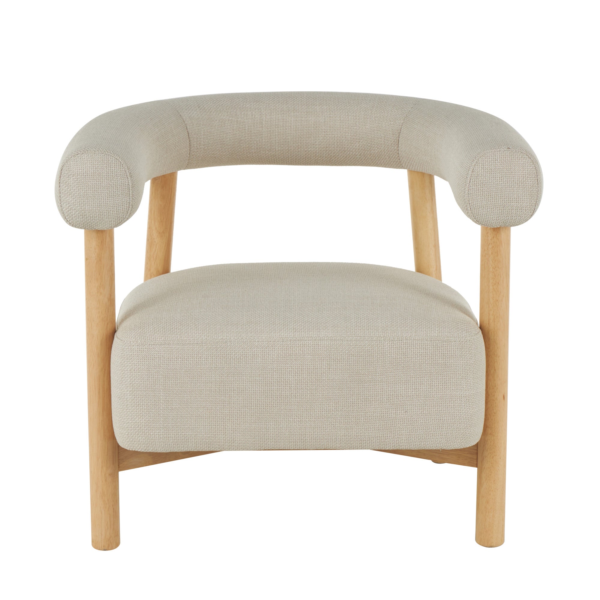 Beige Polyester Curved Back Mid Century Modern Round Boucle Living Room Accent Chair with Wood Frame
