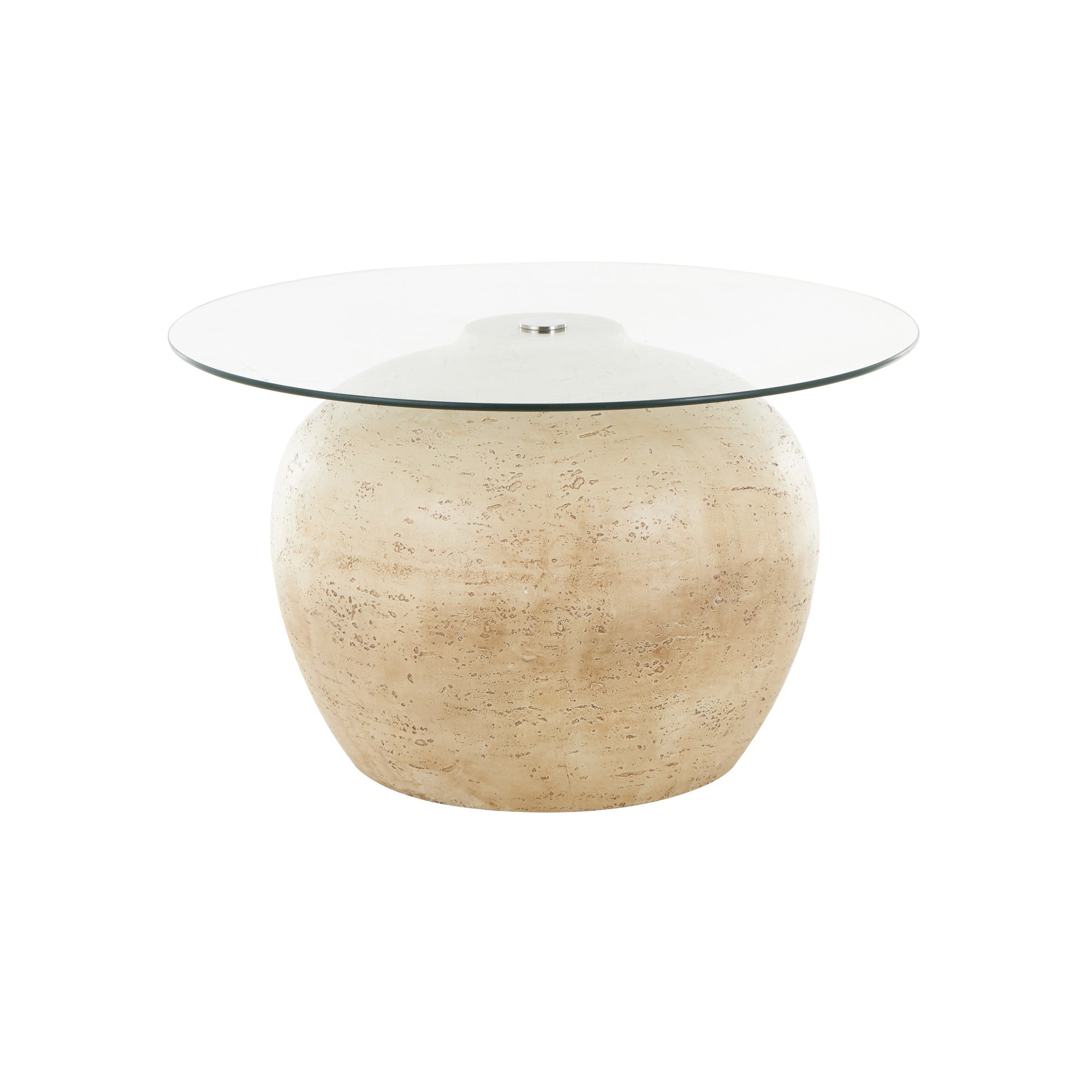 Beige Resin Wide Living Room Coffee Table with Tempered Glass Tabletop