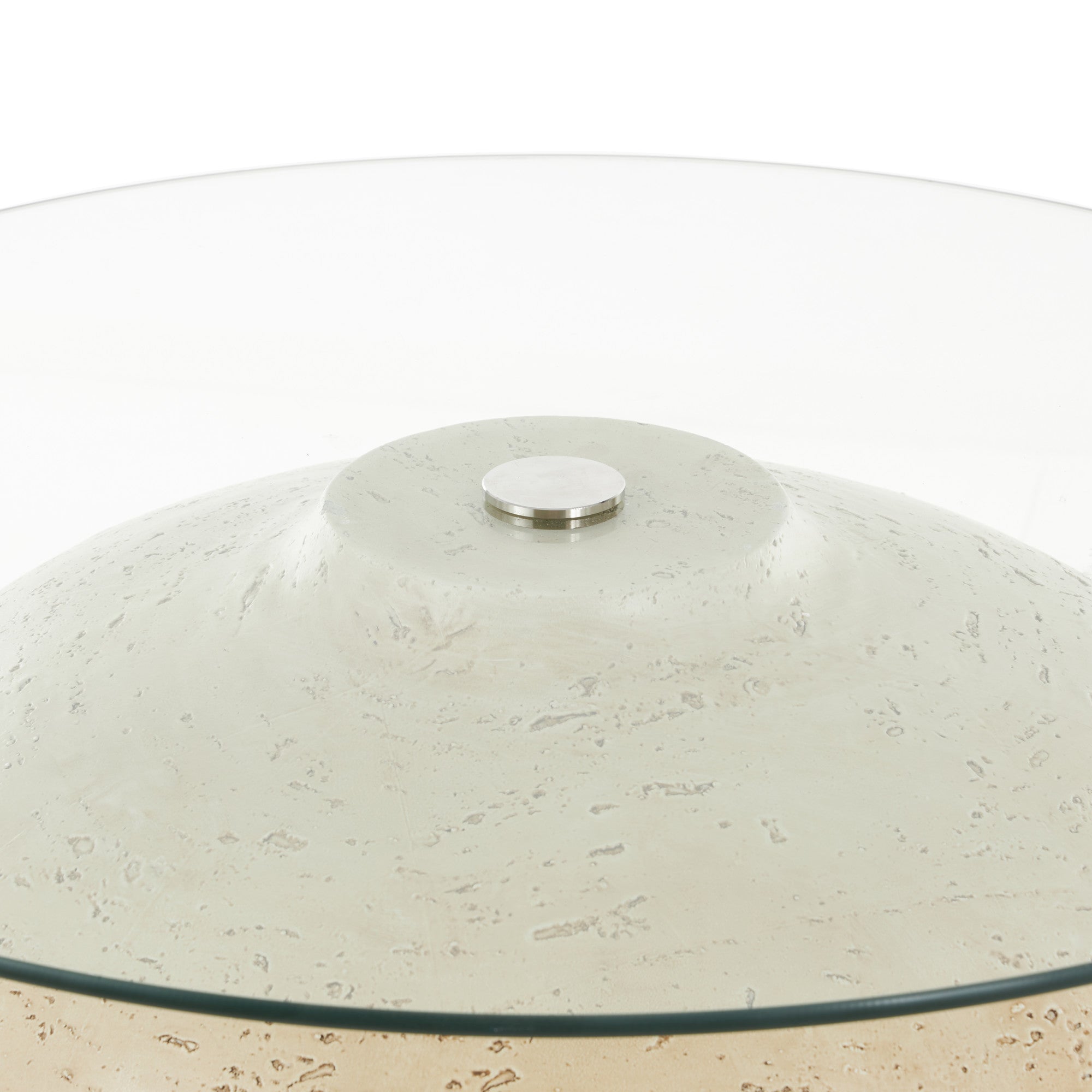 •This living room coffee table is made from durable resin and features a glass tabletop