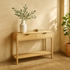 •This pine console table includes two spacious drawers, offering both ample storage and a touch of modern sophistication to your living area
