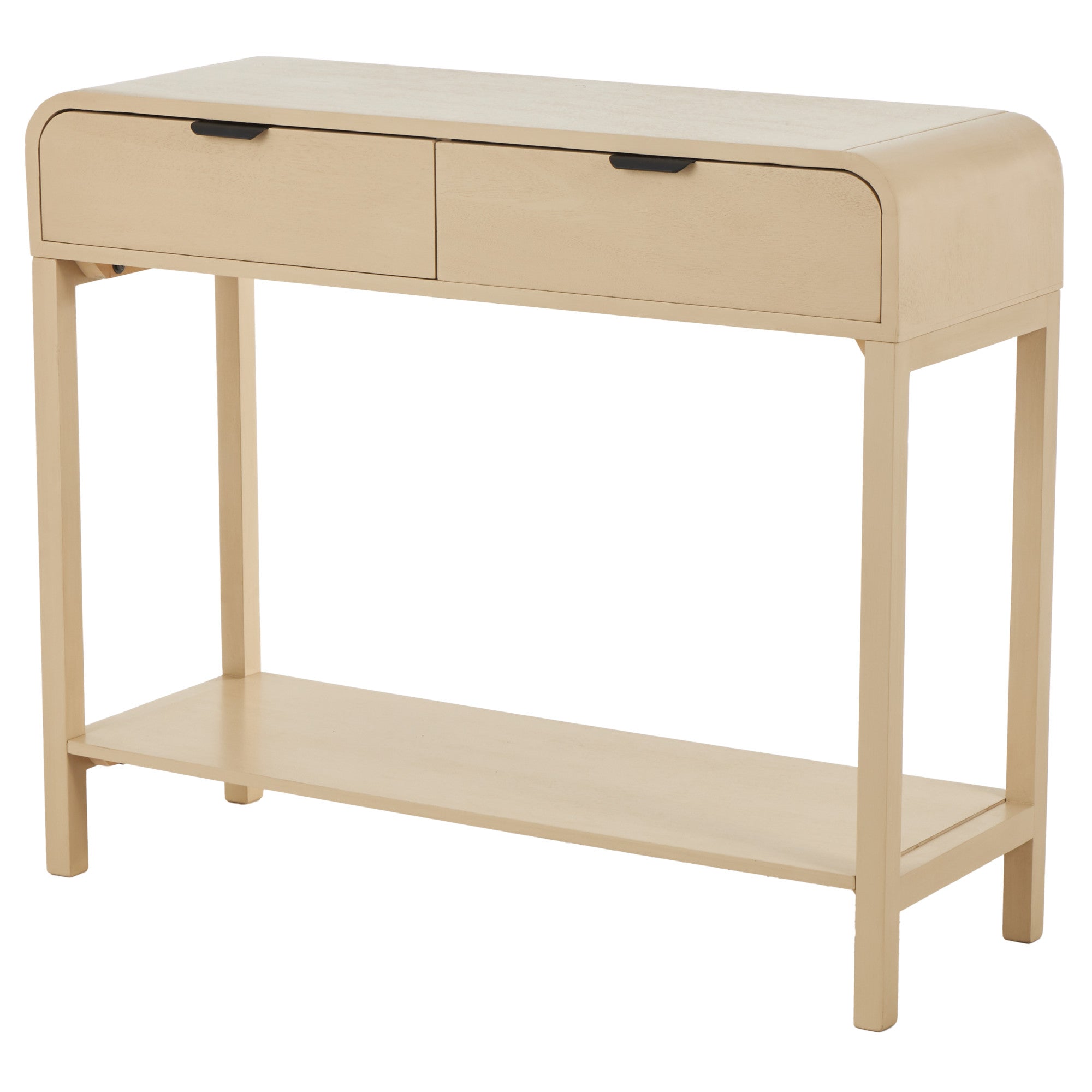 Beige Wood Handmade 2 Drawer Living Room Console Table with Black Handles
