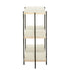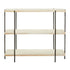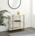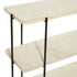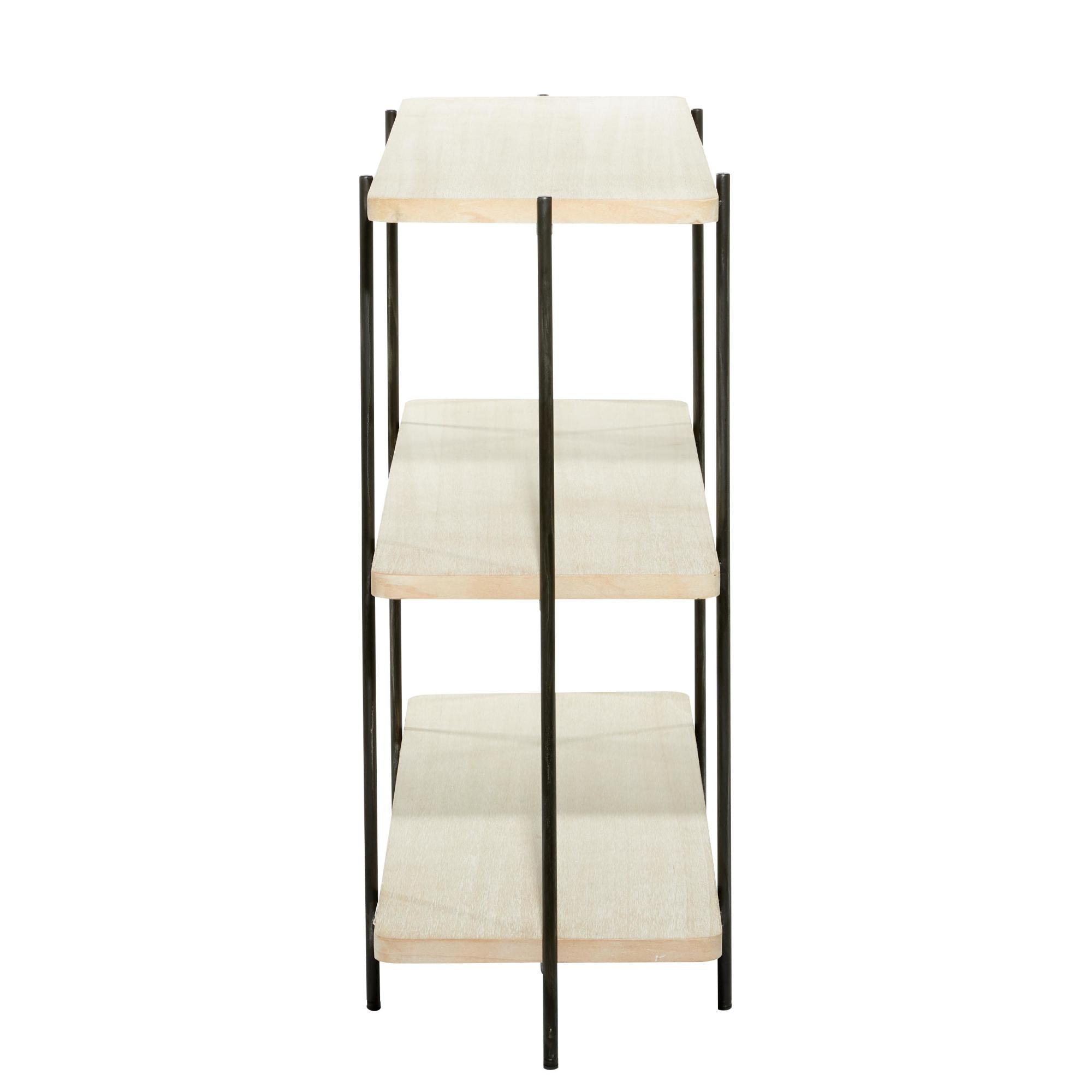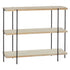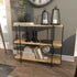 •Each wooden shelf of the contemporary home console table is securely mounted on welded metal rods for enhanced stability