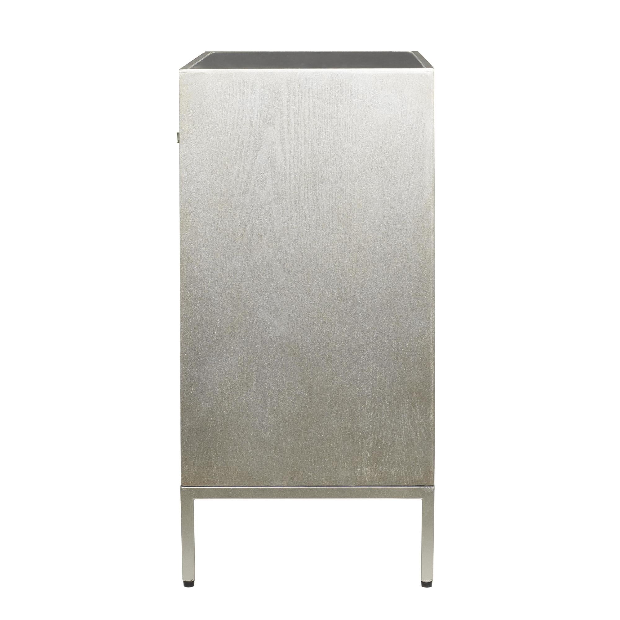 Beautifully crafted with durable structure and design for a long lasting enjoyment to keep your space free of clutter. A spacious piece of furniture that can instantly transform the look of any room in your home. This storage cabinet can be elegantly displayed in any room, decorated with a metal object on top of books next to a large ceramic vase for an extra touch of glamor. Adjustable levelers provide stability on uneven surfaces. Includes anti-tipping hardware to prevent tipping. This chest has a completely finished back. This item ships in 1 carton. chest features 3 drawers with a 25 lbs weight limit, and side wood glides. Suitable for indoor use only. This item ships fully assembled in one piece. Maximum weight limit is 25 lbs. This is a single storage cabinet. Glam style.