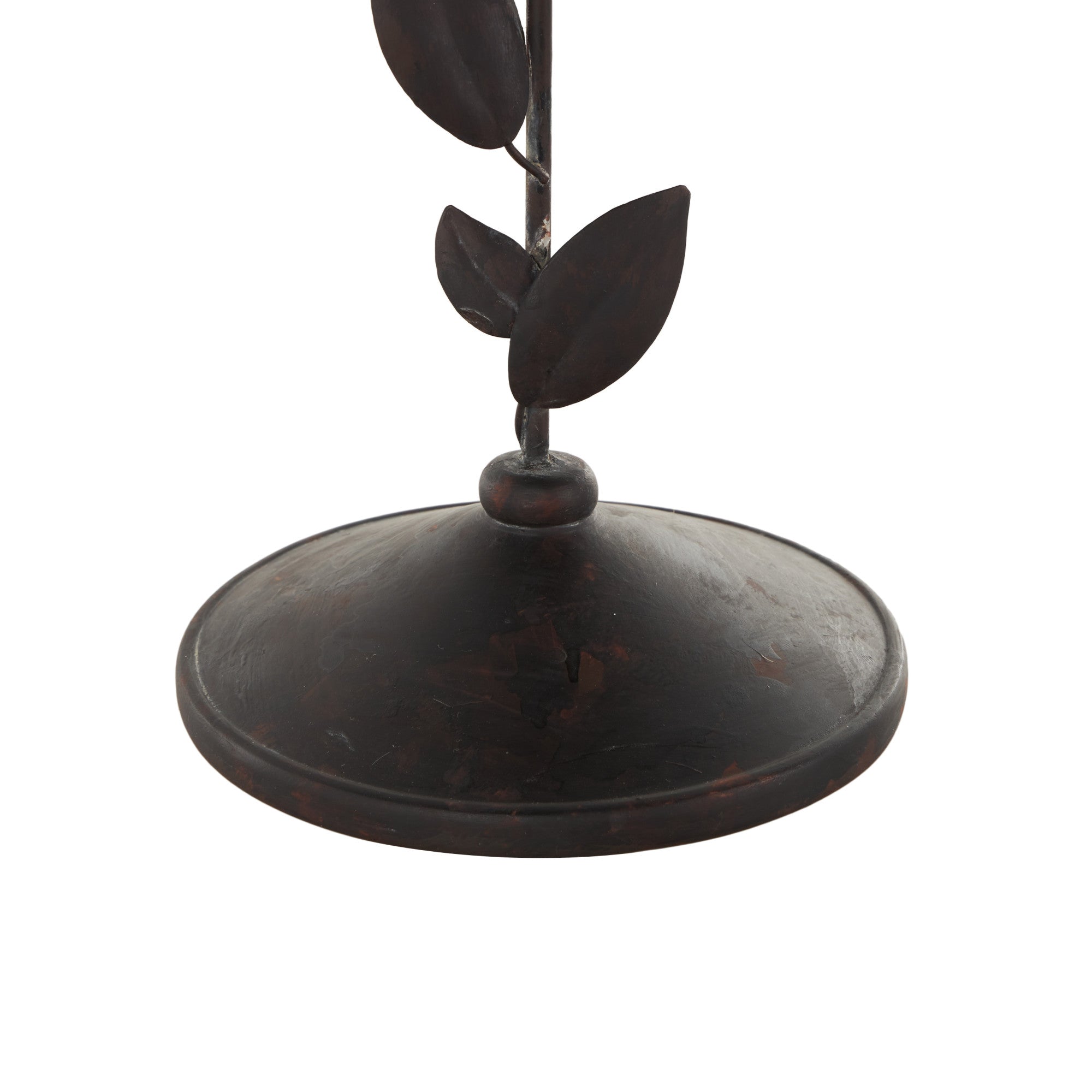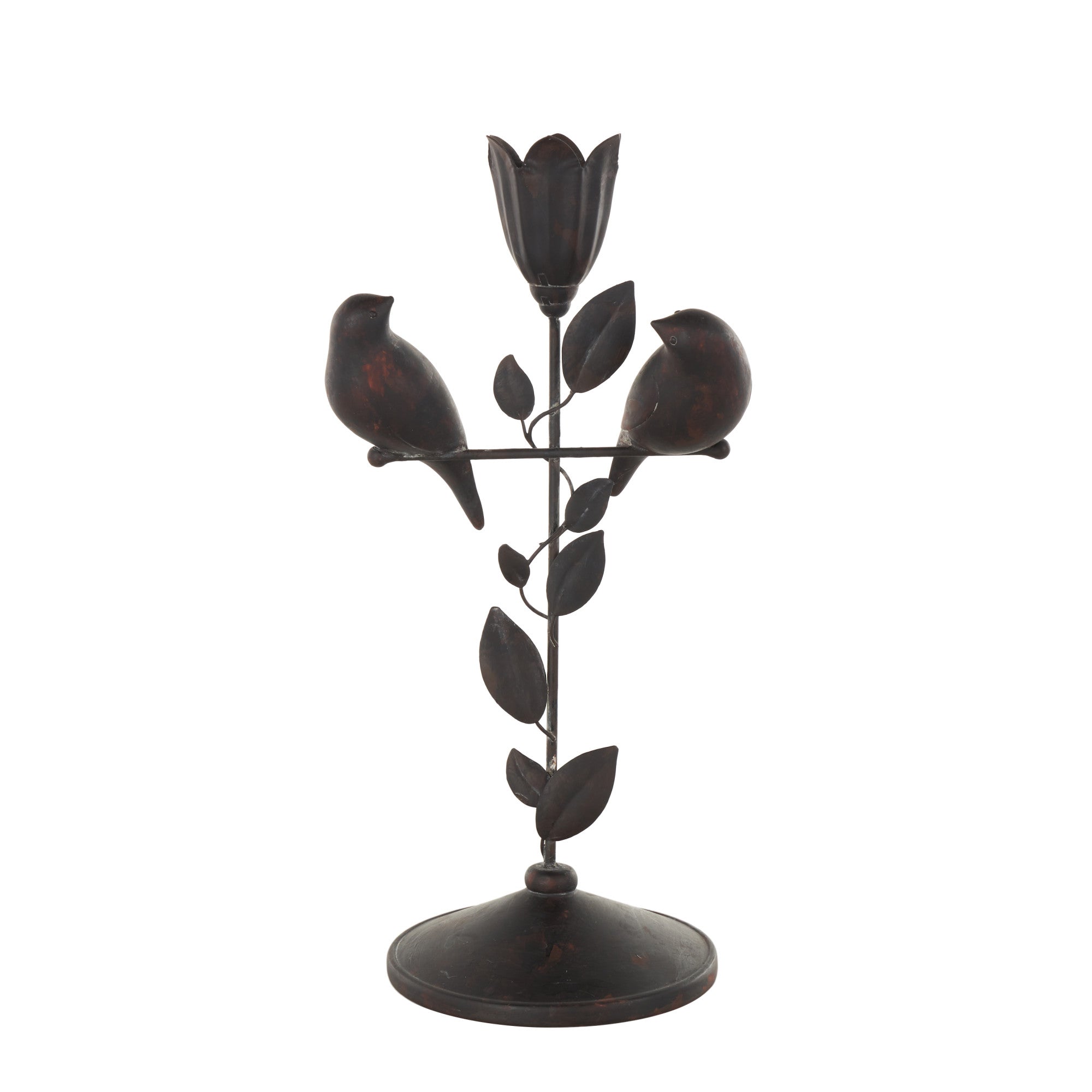 •This weathered home decor figurine has a round shape with two birds and a leaf vine, making it a stylish piece