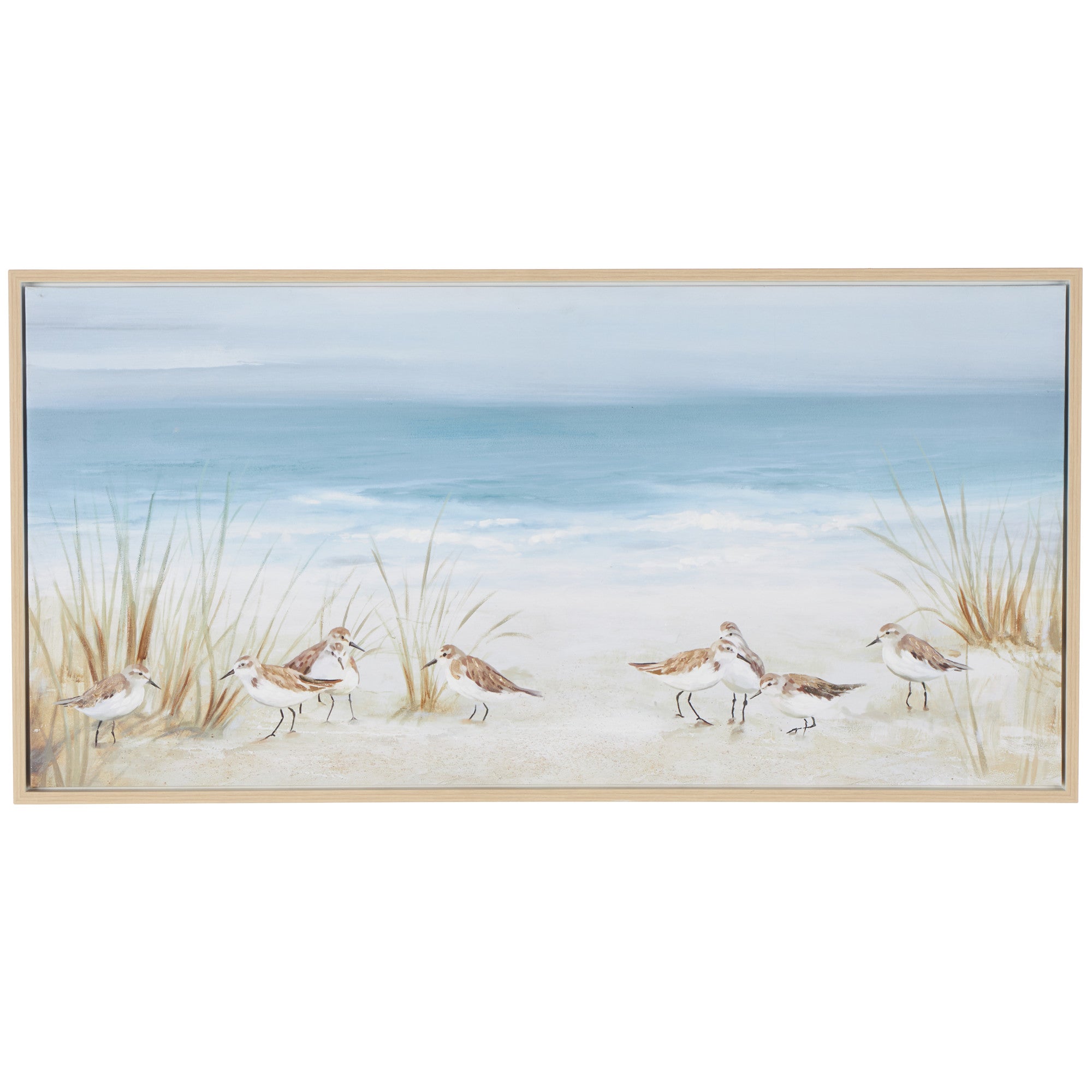 This wall art exude natural beauty and sophistication in both color and composition. Showcase your personality and turn your walls into an art gallery with this impressive wall art. Place this bird canvas wall art in your coastal-themed living room to enhance the ambiance with its soothing colors and intricate details. This item ships in 1 carton. Can be hung vertically using the sawtooths; nails and screws not included. Suitable for indoor use only. This item ships fully assembled in one piece. This is a single canvas wall art. Coastal style.