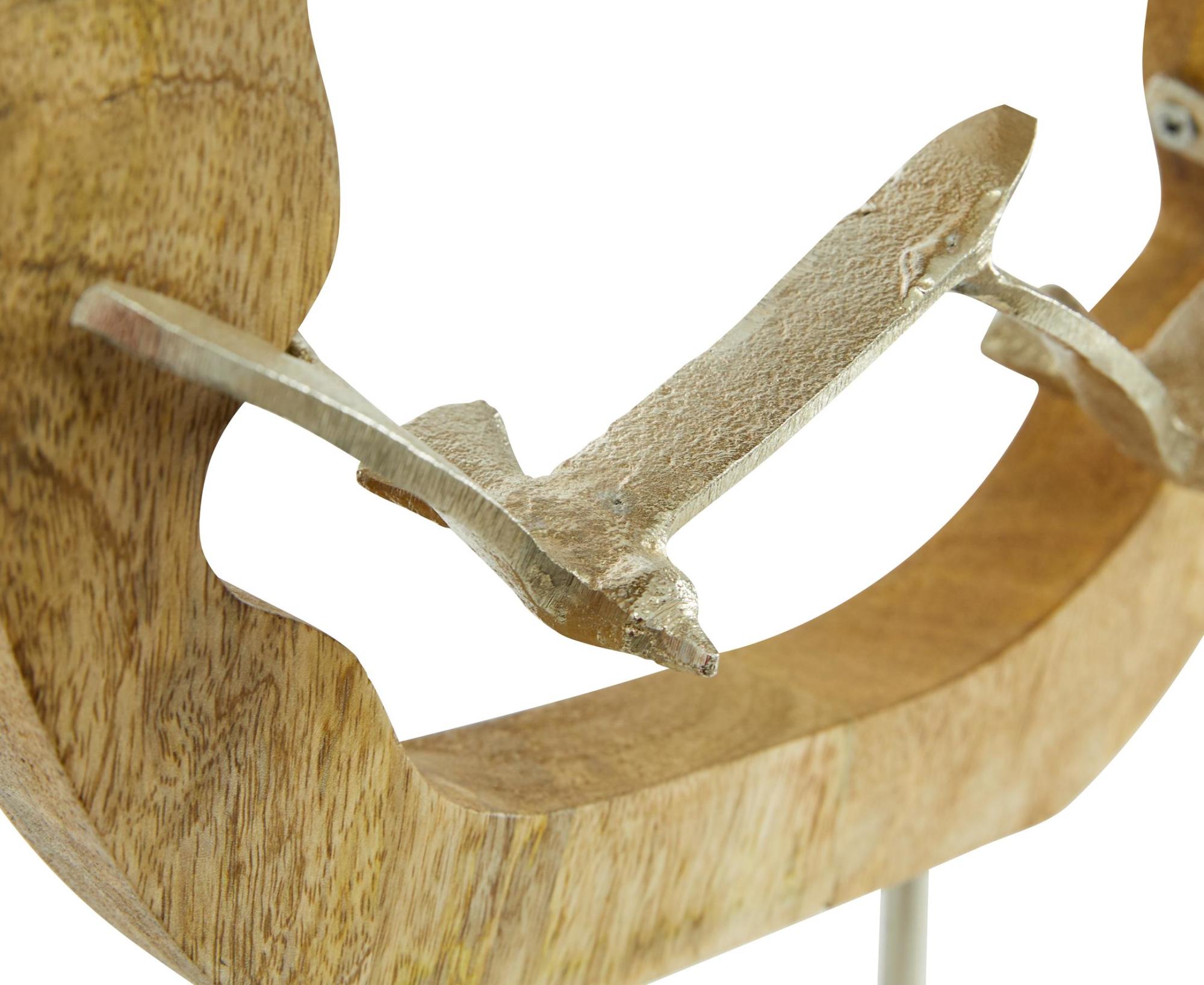 •This decorative sculpture is made of an aluminum, iron, marble, and mango wood