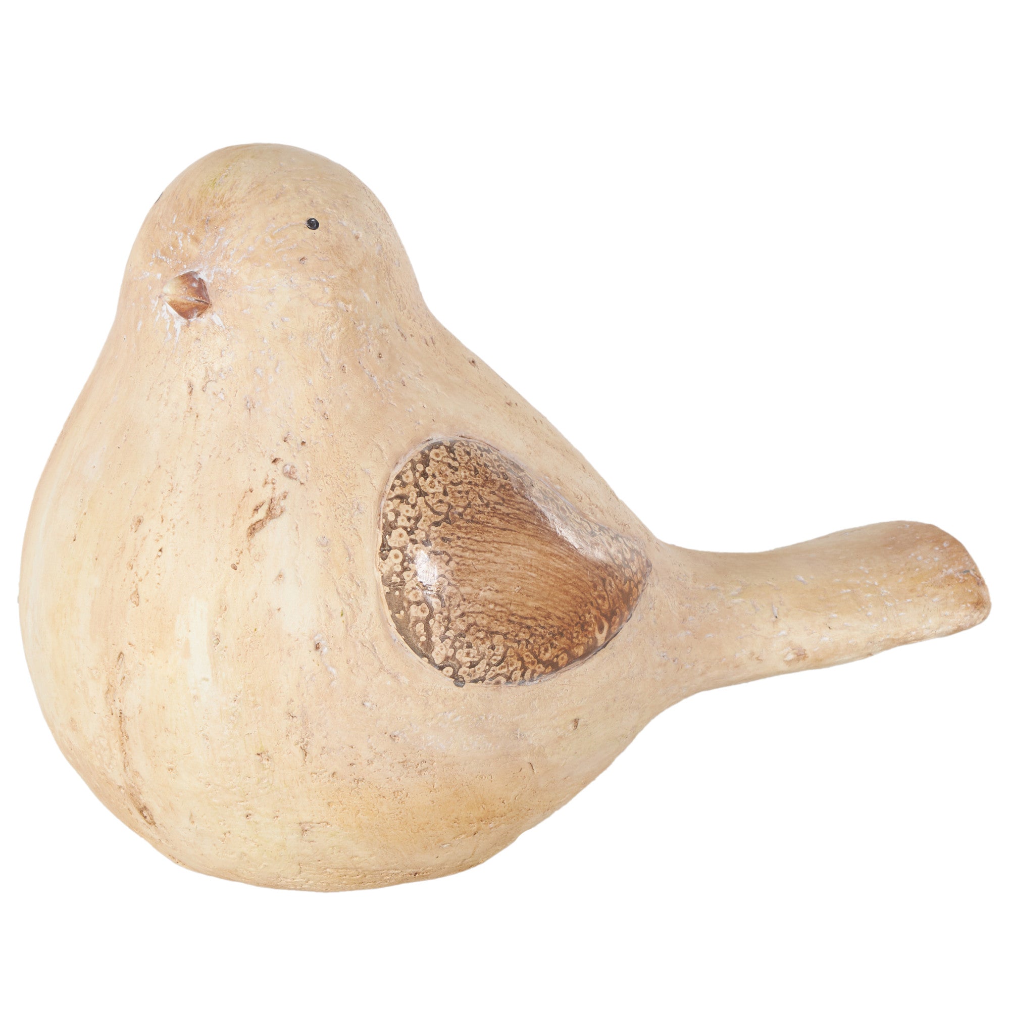 Bird Cream Magnesium Oxide Sitting Decorative Garden Sculpture with Brown Accents