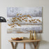 •This captivating wall decor features a rectangular framed body and a "flock of birds in winter" painted art canvas