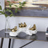 Adorn your surface space by incorporating sculpture into your decor to add depth and texture in your home. An artistic display to showcase your personality and enhance the look of any open table top space. Perfect for any accent table, this bird home decor statue enhances the aesthetic of glam-themed entryways, living areas, lobbies, kitchens, or bedrooms. Designed with felt or rubber stoppers at the base that prevent scratching furniture and table tops, as well as sliding around. This item ships in 1 carton. Please note that this item is for decorative use only. Adorn your surface space by incorporating sculpture into your décor to add depth and texture in your home. Porcelain sculpture makes a great gift for any occasion. Suitable for indoor use only. This item ships fully assembled in one piece. This is a single statue. Glam style.