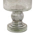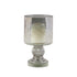 •The glass hurricane lamp boasts a unique tinted glass with a round pedestal base, highlighting its elegance