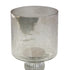 •The tinted hurricane glass candle holder boasts a round shape with vertical striped patterns and a cylindrical shade bearing crack-like patterns for added appeal