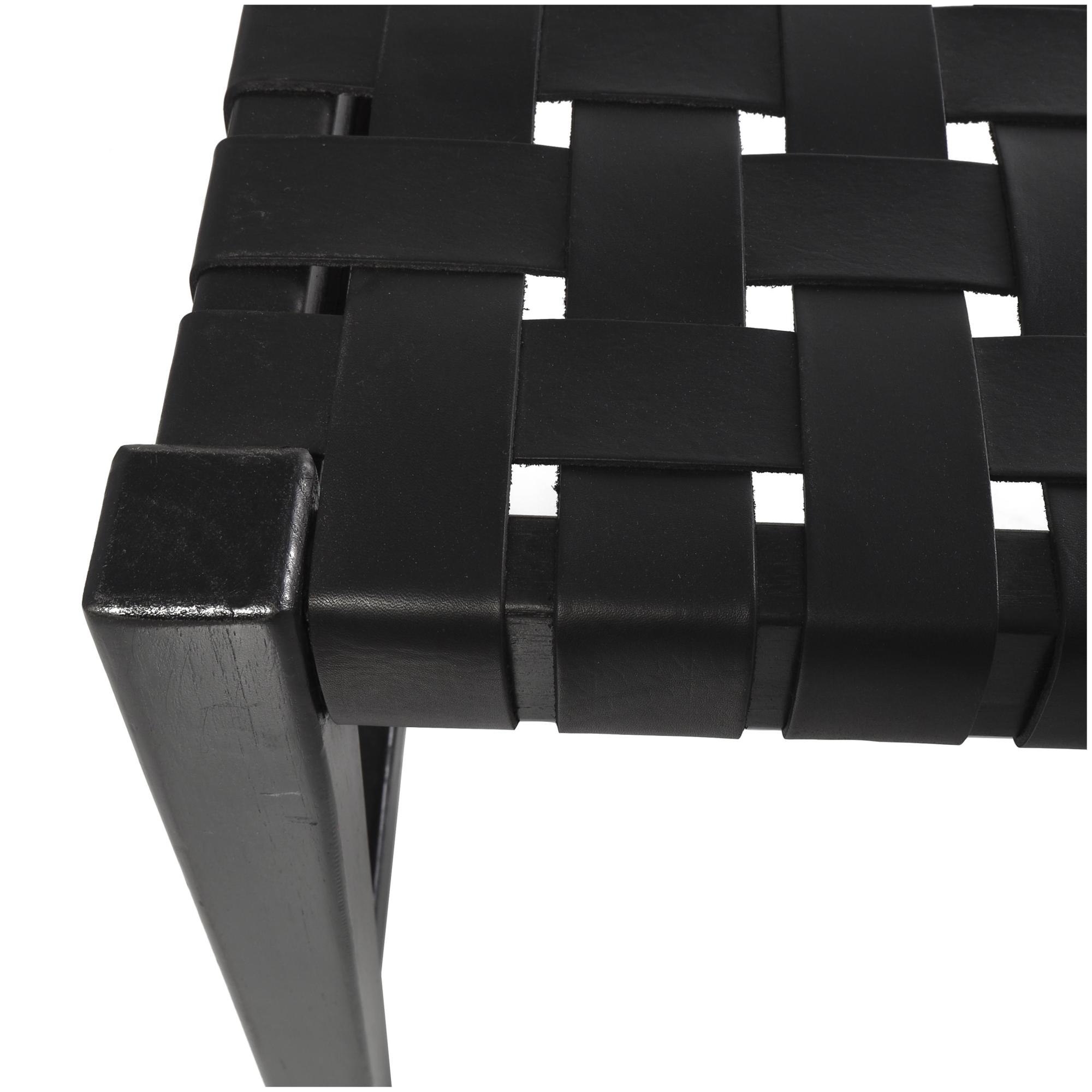 •Leather bench carries a minimalistic form with an open structure design and is crafted with a soft woven leather seat for all-day comfort