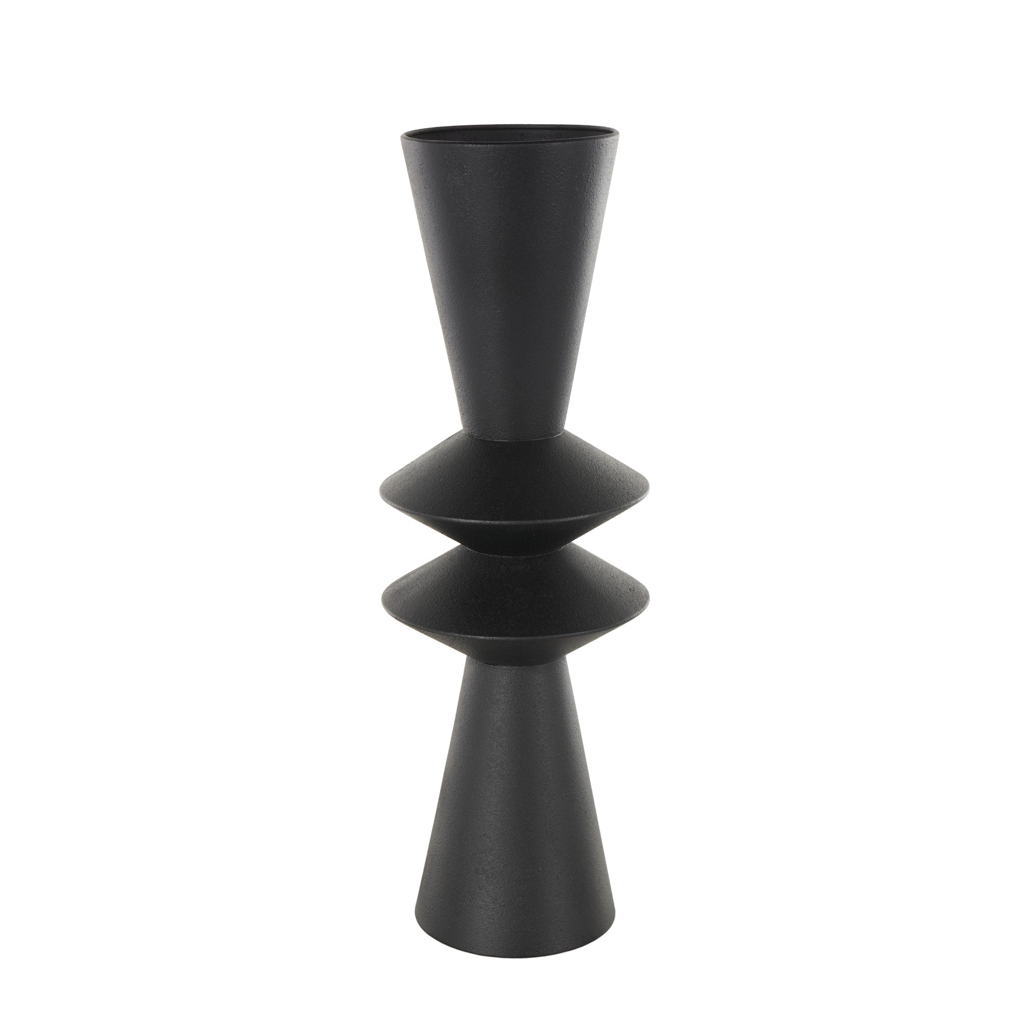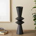 •The vase for dried flowers has a geometric shape with two stacked sections at the middle, and cone-shaped top and bottom pieces