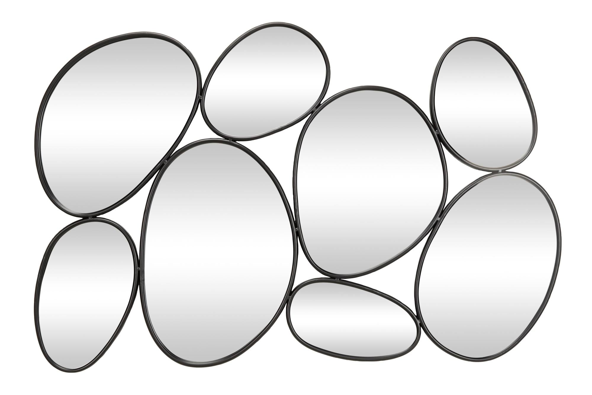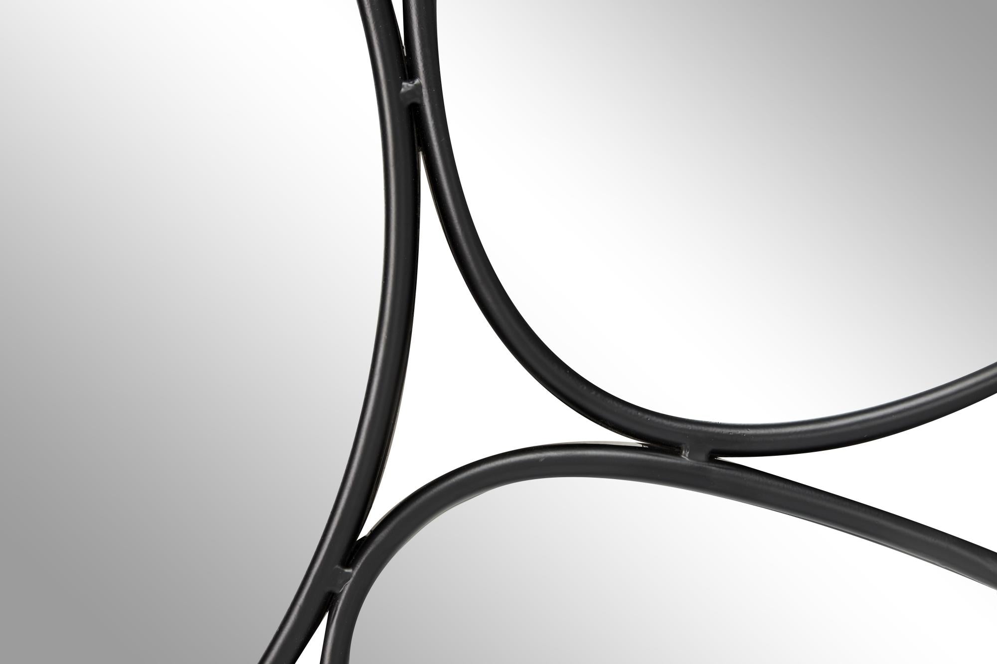 •The contemporary accent wall mirror is an assemblage of encased reflective mirrors with soldered iron frames