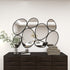 •The metal wall mirror features an elegant overlapping design with its geometric reflective glass panels