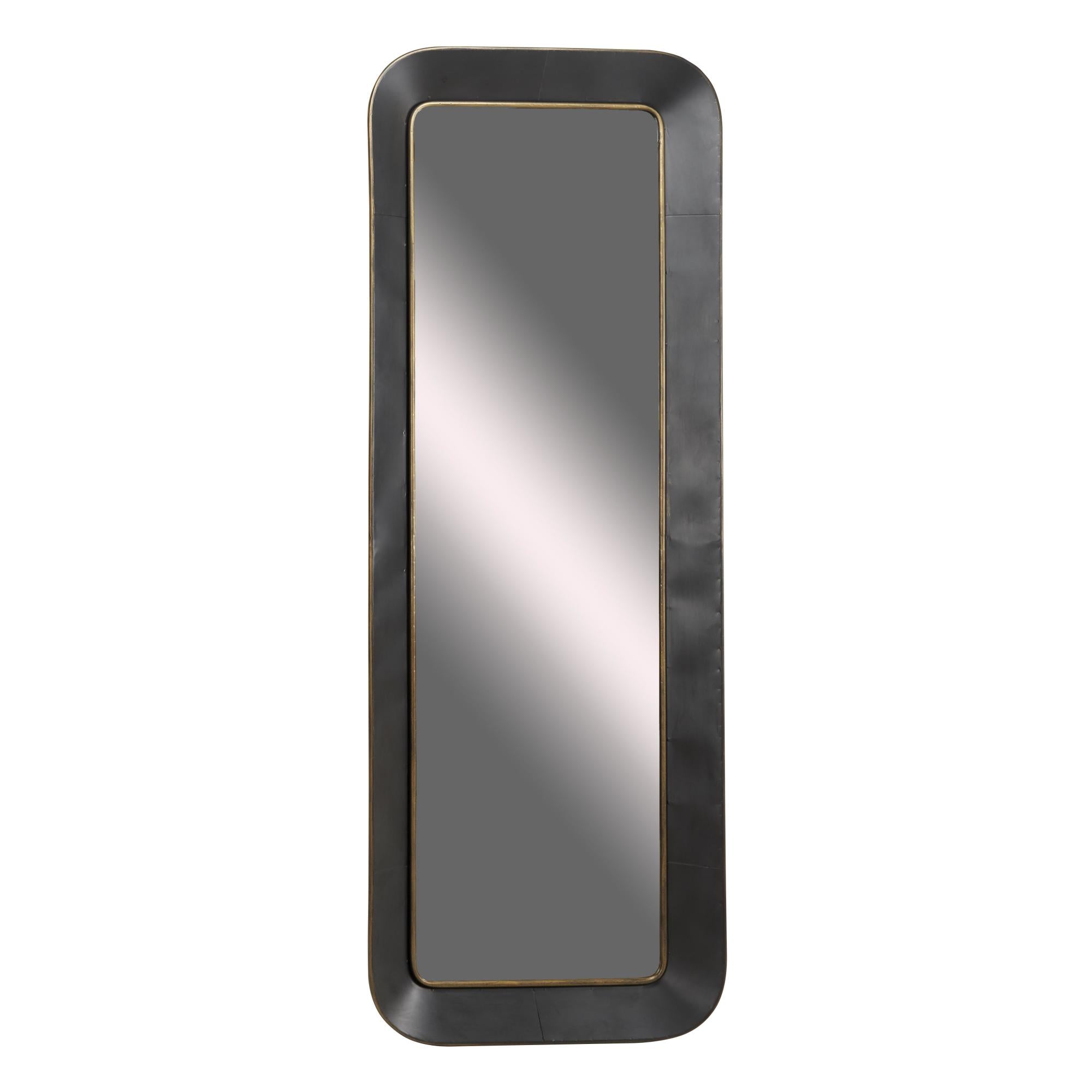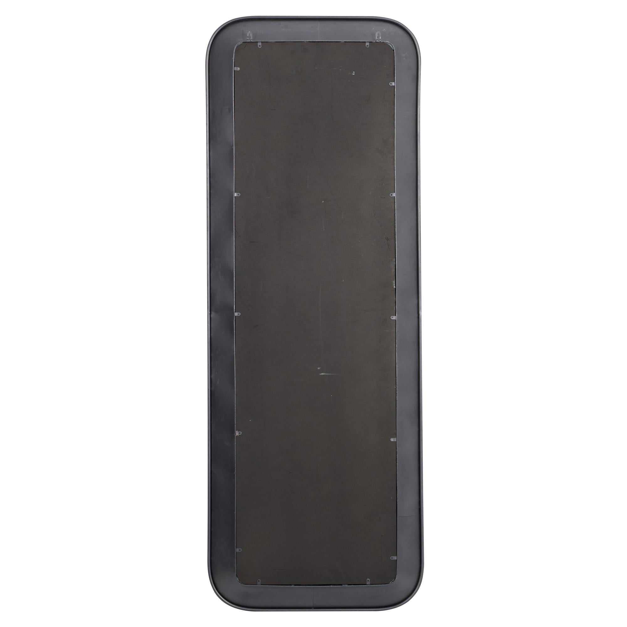 •This iron wall mirror boasts a tall rectangular design in an industrial style inspired form