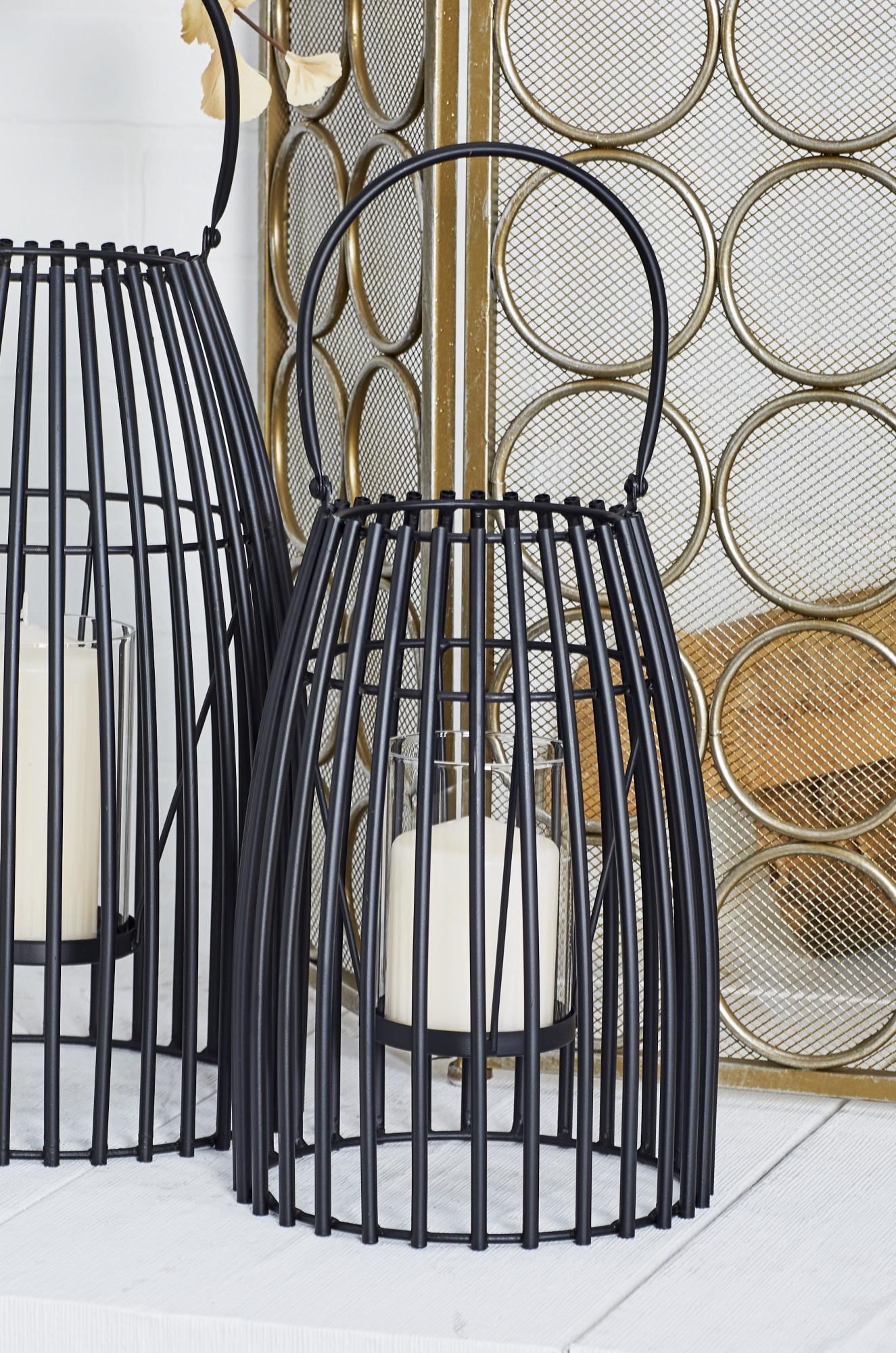 •Matte lantern candle holder decor features a round shape with a vertical slat pattern and open-ended inverted cone shape, and arched handle for visual interest