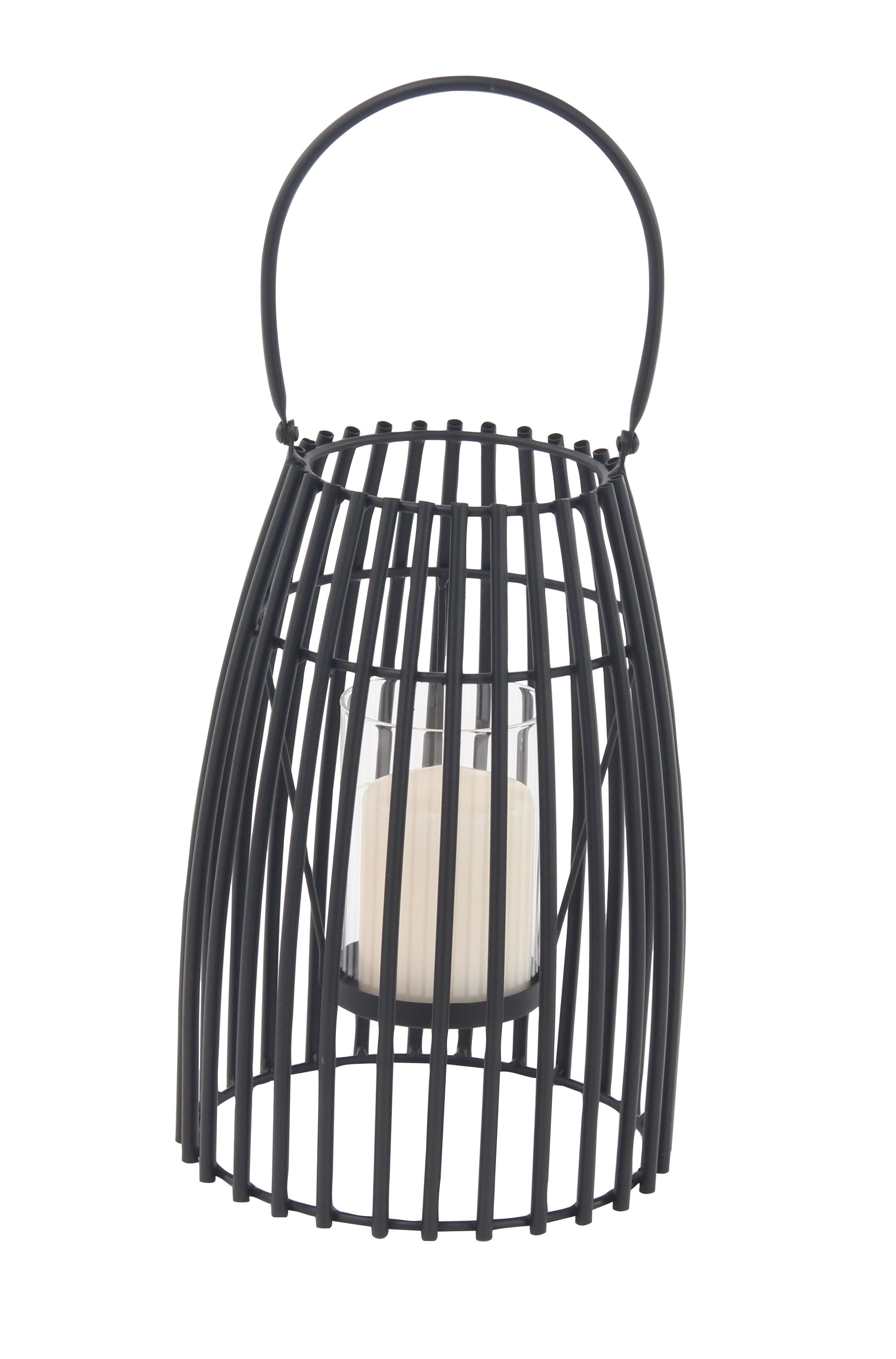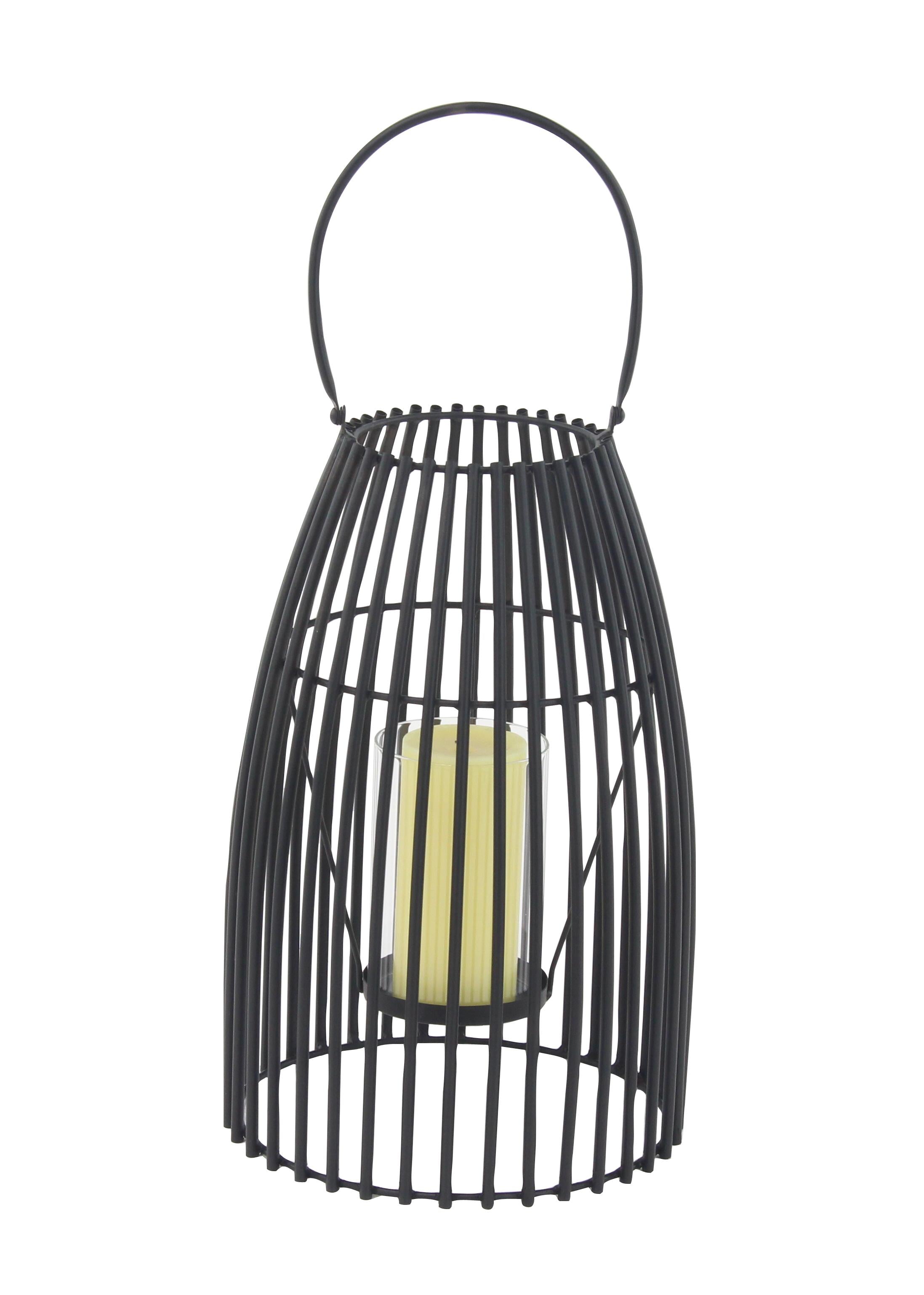 Black Metal Decorative Indoor Outdoor Candle Lantern with Handle