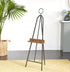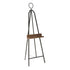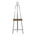 •This iron easel features an industrial design with a wood tray and ring accent on top