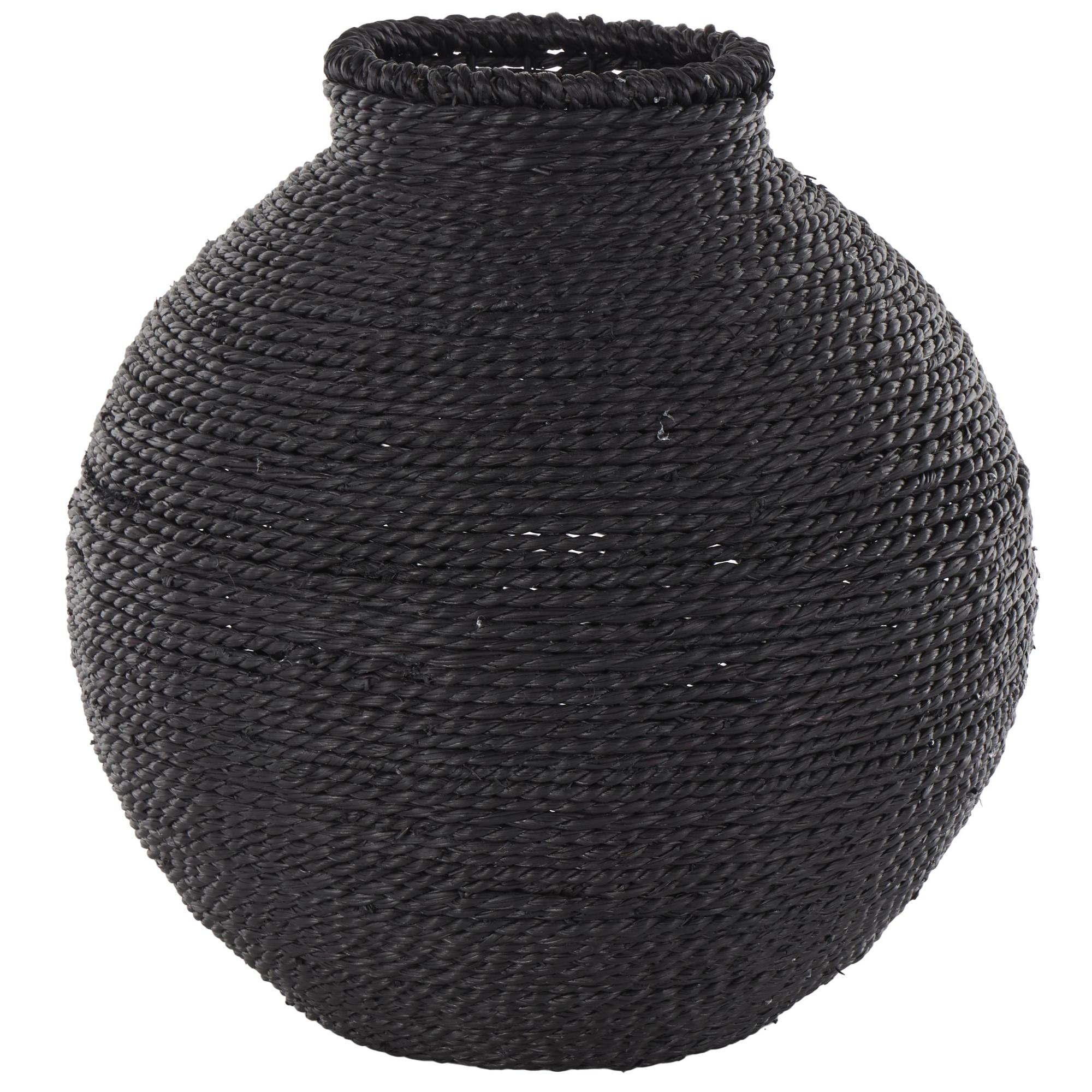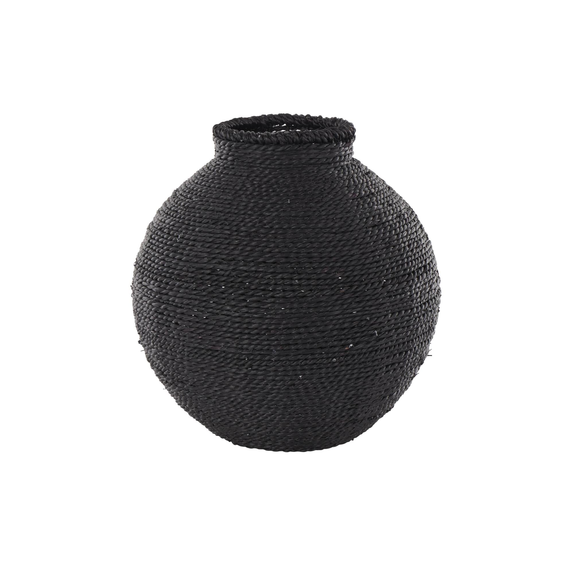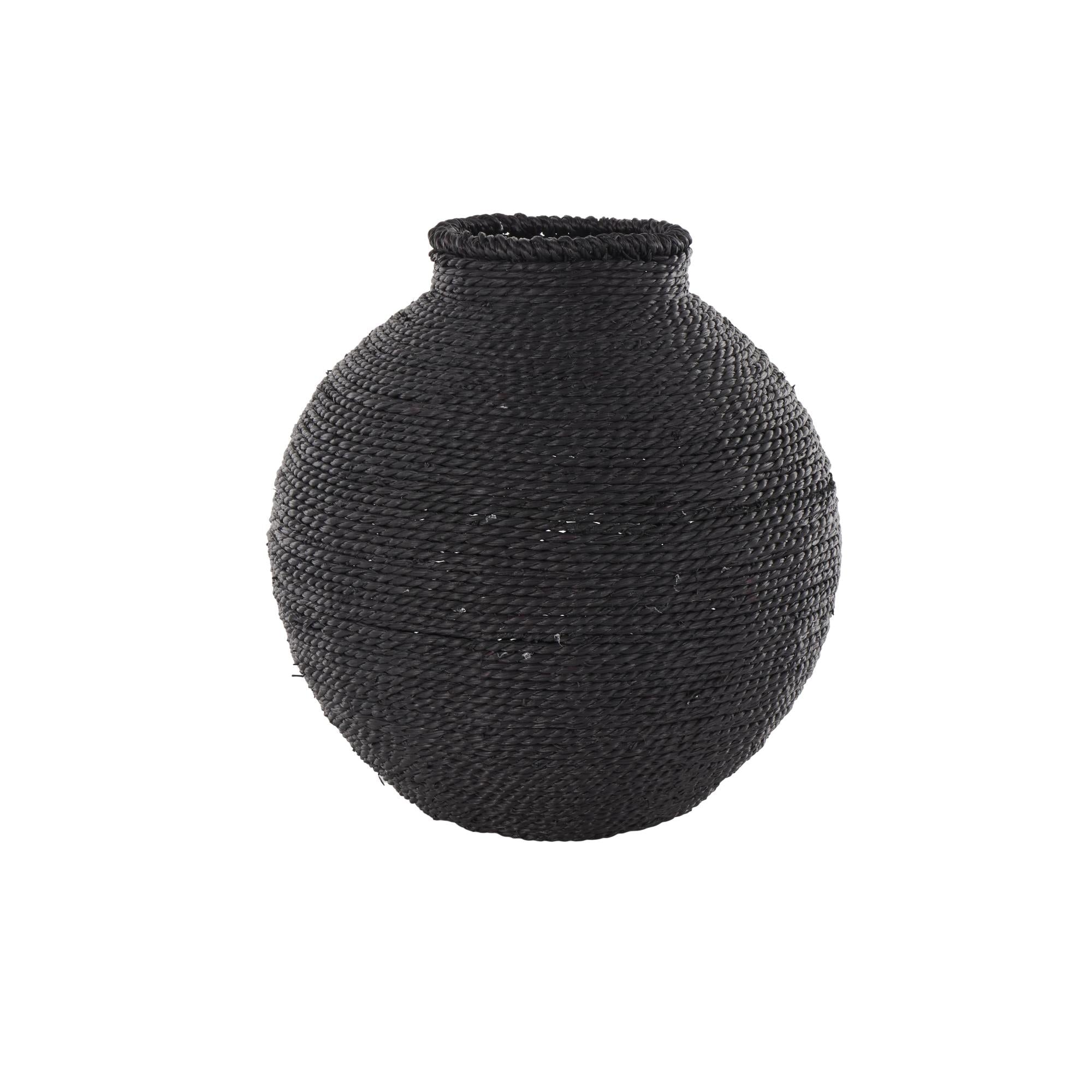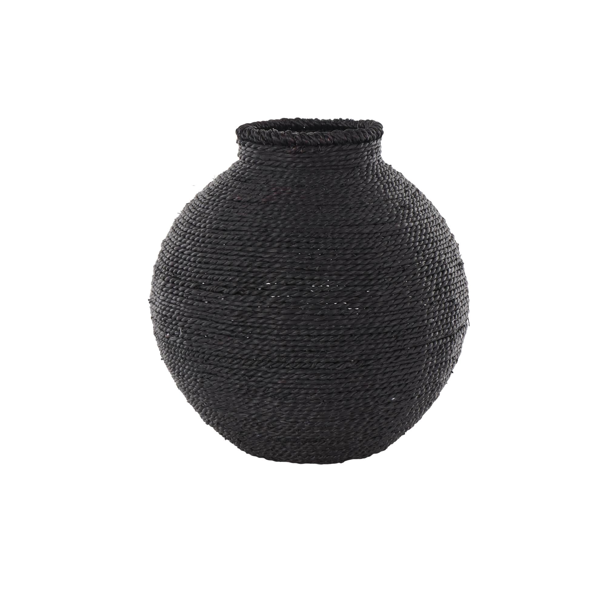 •The textured vase for faux flowers boasts a perfectly round shape that and rope pattern enhances its visual charm