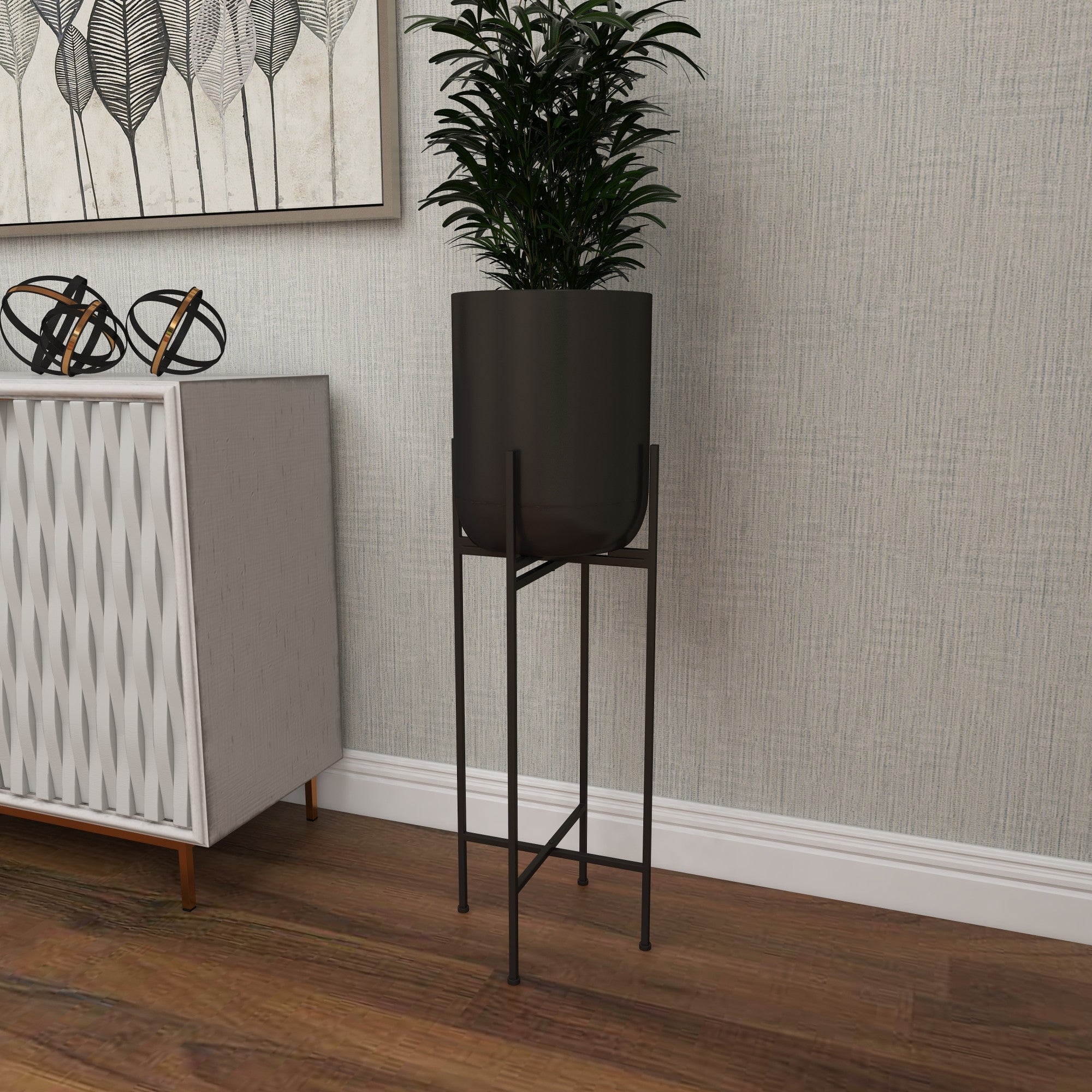 Black Metal Indoor Outdoor Planter with Removable Stand