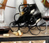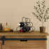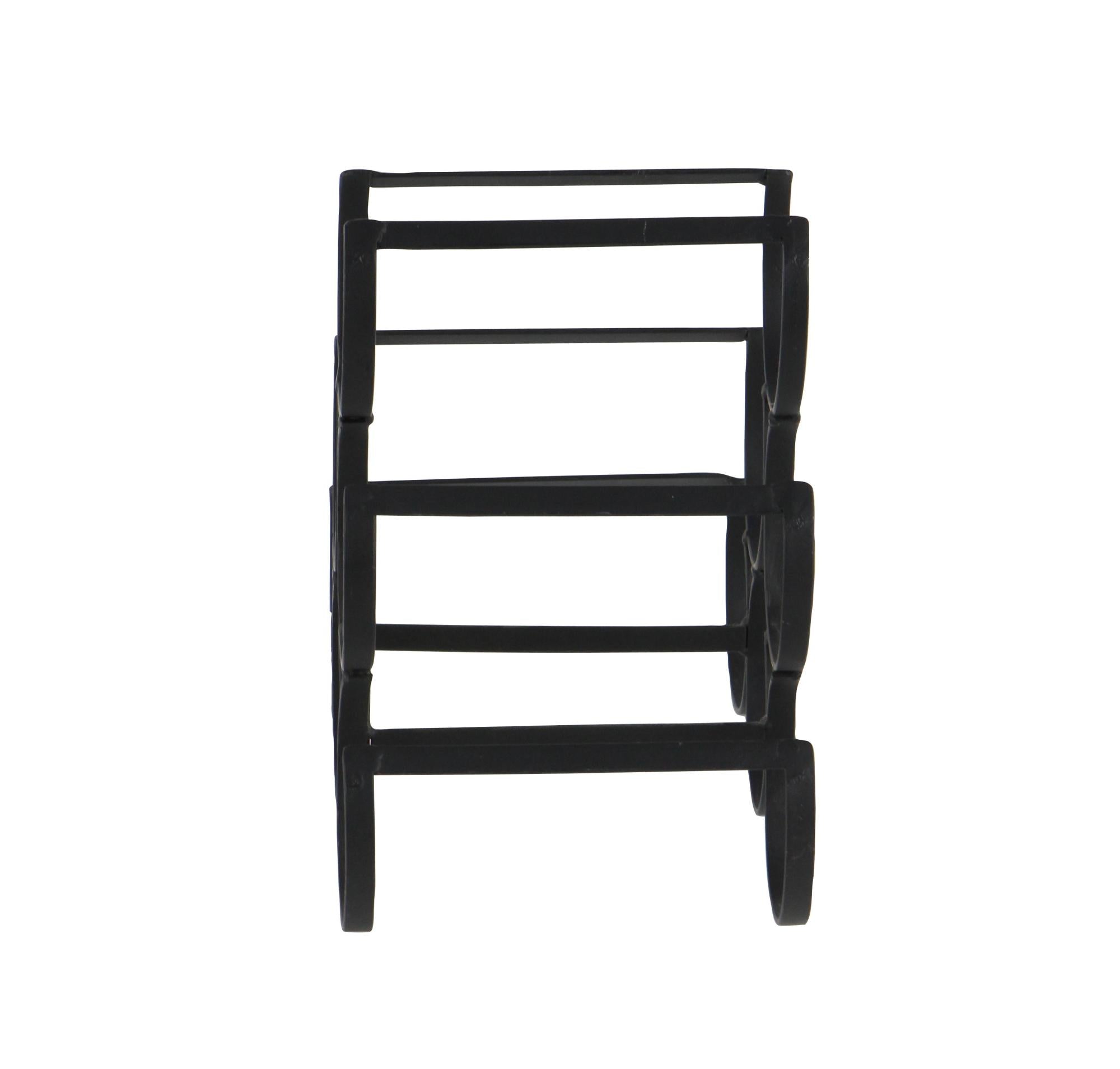 •The industrial wine holder stand boasts a slender frame, expertly welded from metal and painted in black, ensuring stability and strength