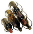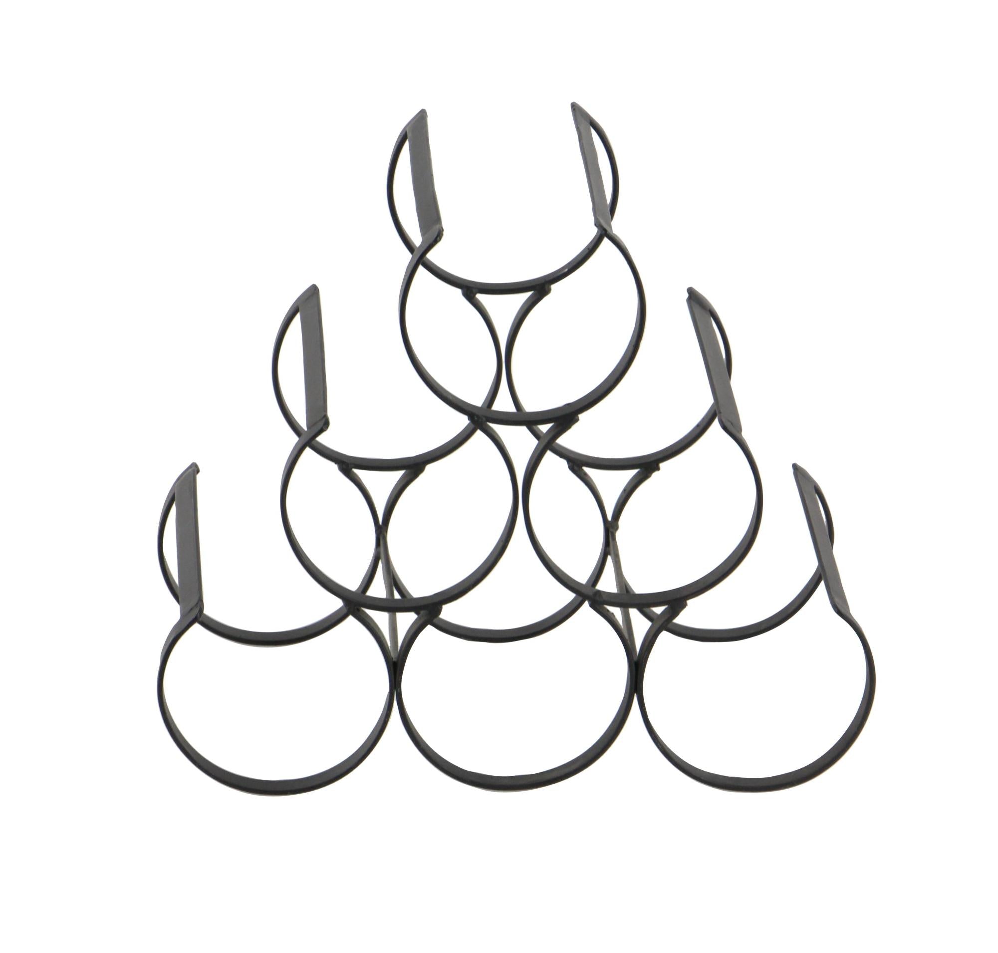 •This iron wine rack showcases an open cylinder design, accommodating six bottles with ease