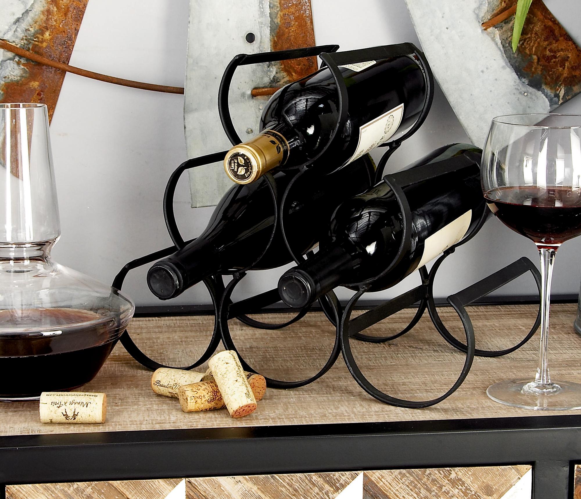 Black Metal 6 Bottle Kitchen Wine Rack with Curved Holders