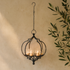 •The distressed tabletop candelabra displays a unique open-frame pumpkin silhouette with round holders suspended elegantly on a chain hook