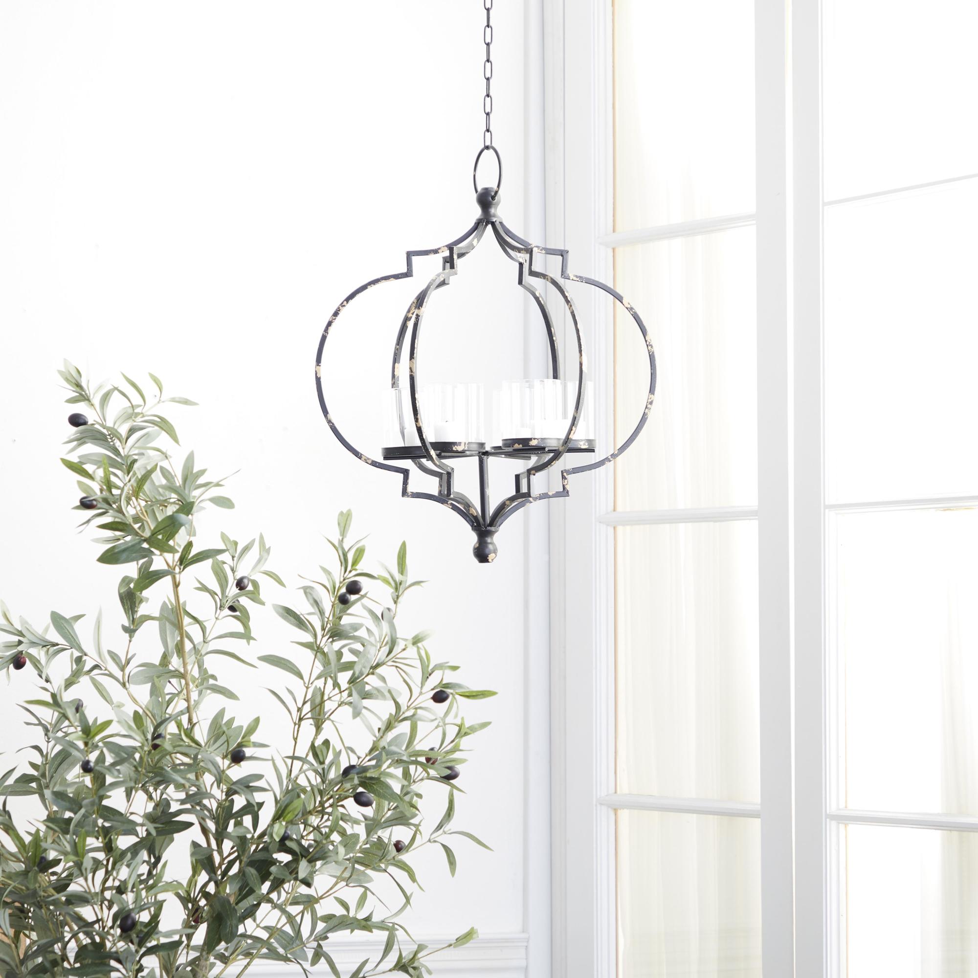 Black Metal Open Caged Hanging 6 Slot Decorative Candelabra with Distressing and Hook