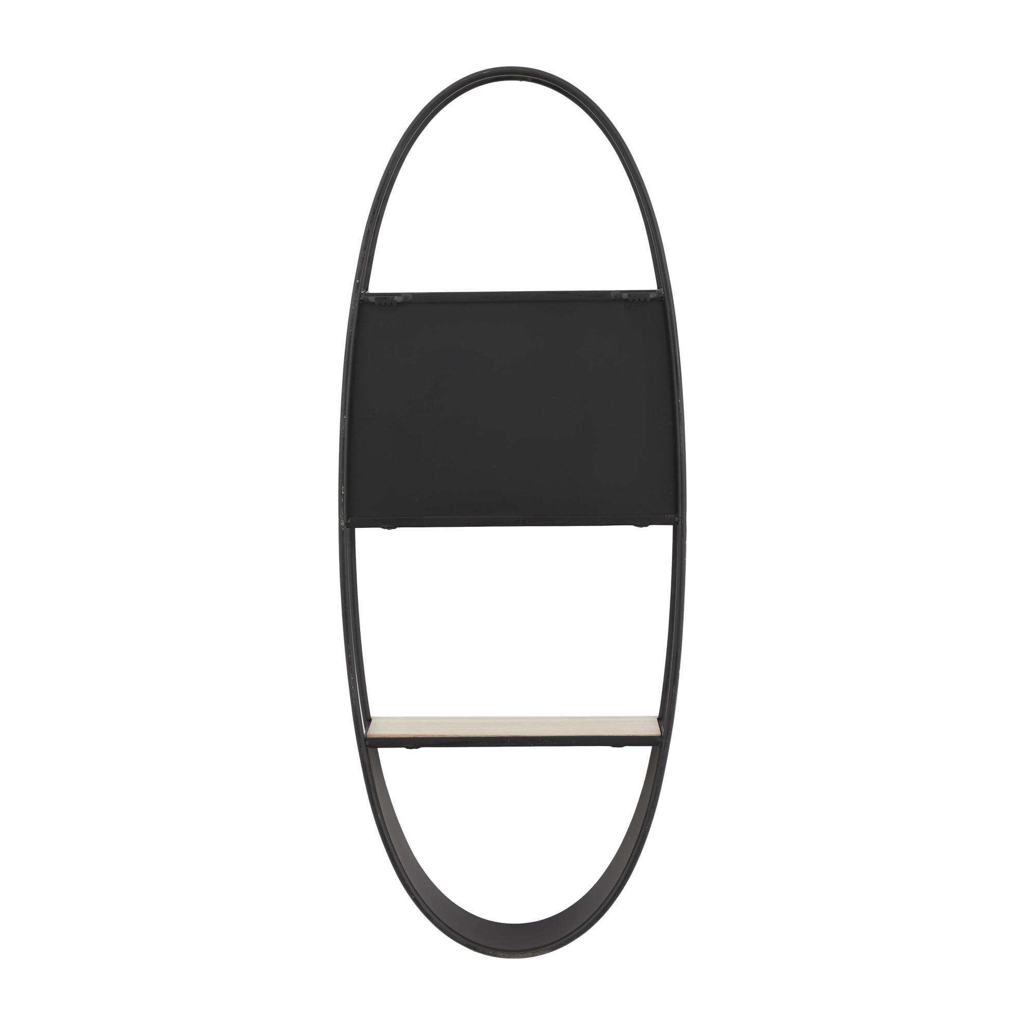 Black Metal Oval 2 Shelf Room Wall Shelf with Wood Accents