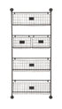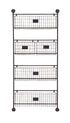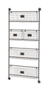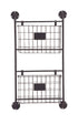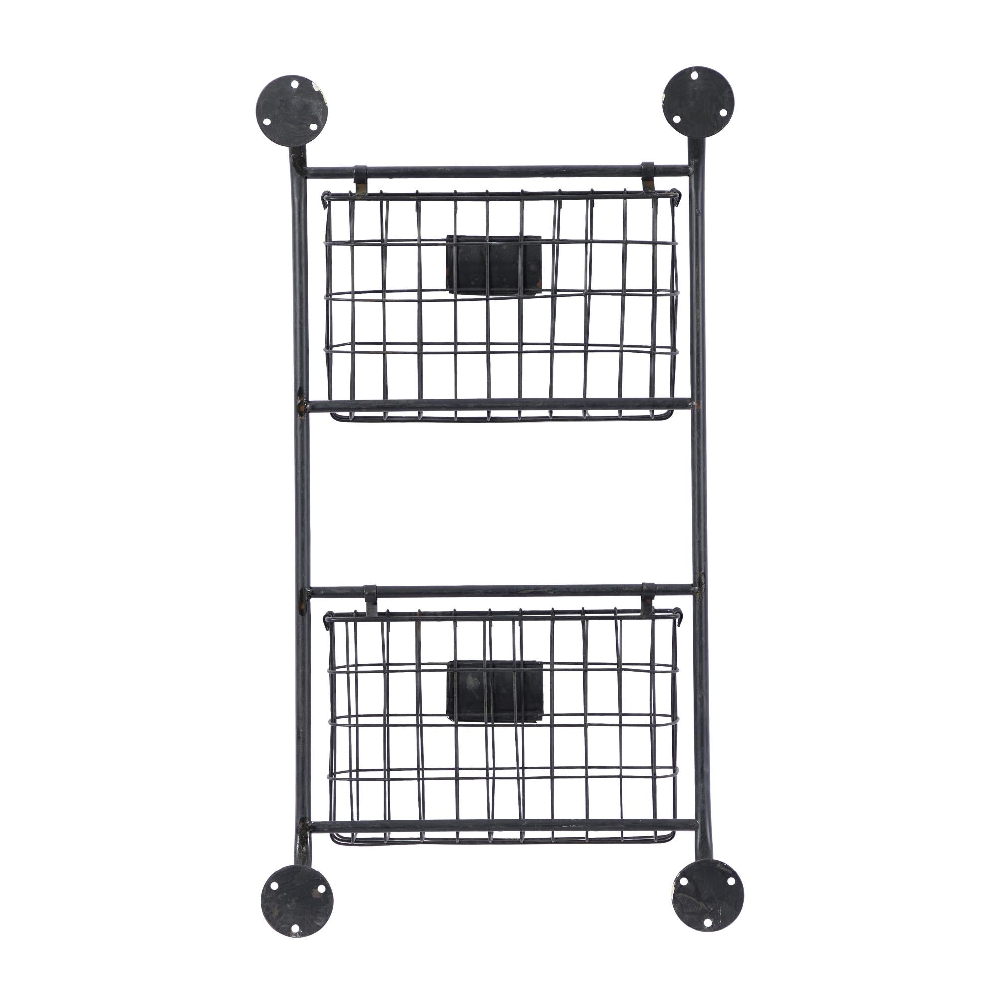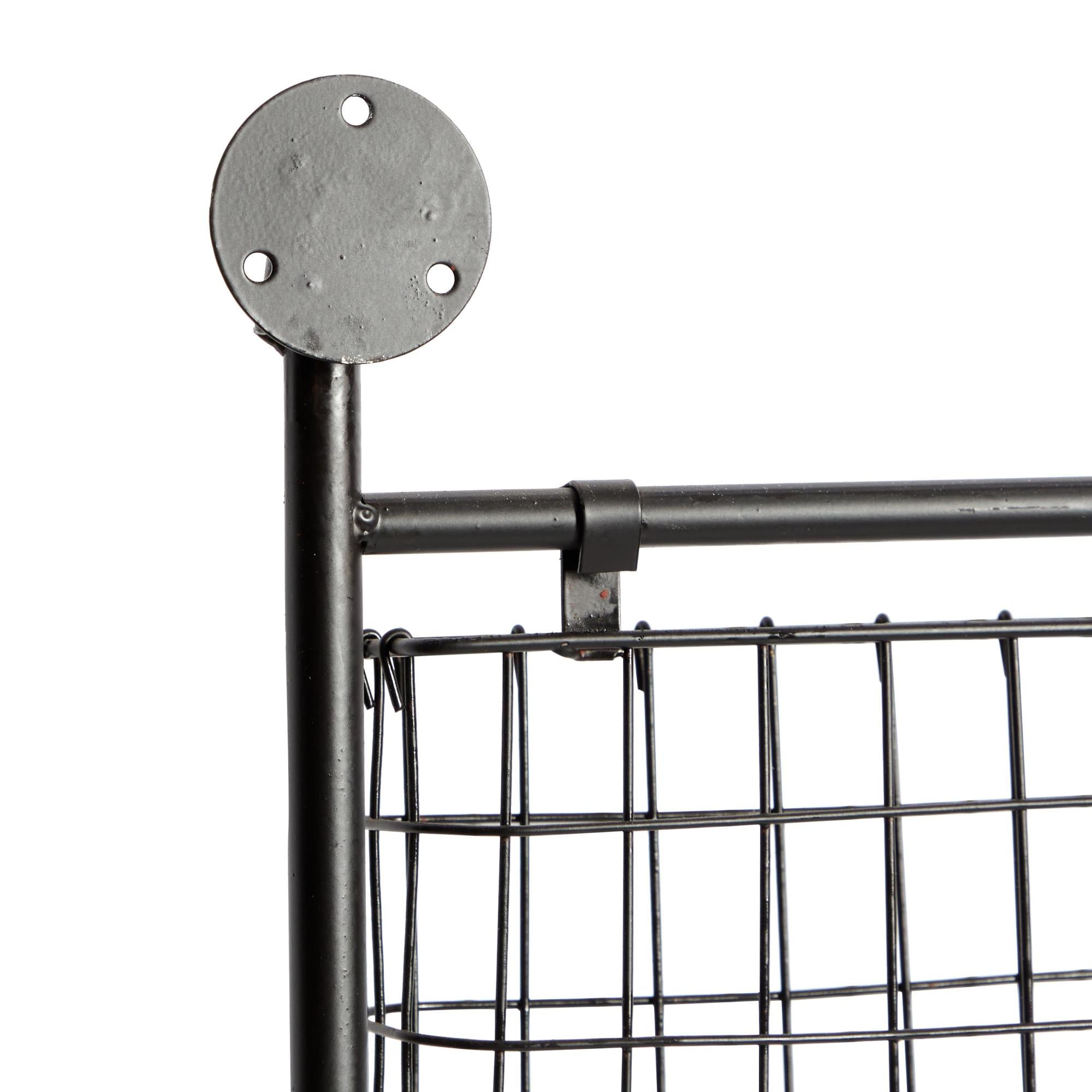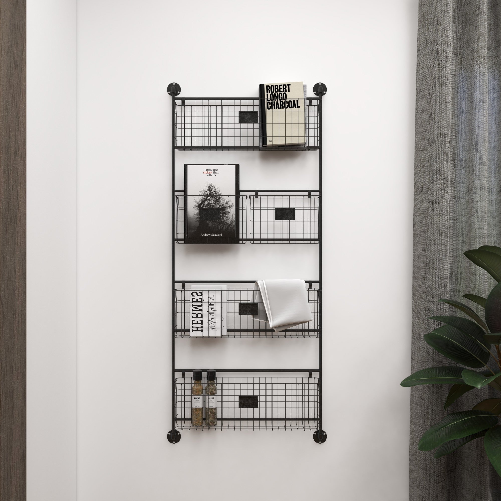 The perfect compact storage for your belongings while keeping your space free of clutter. Bring a finishing touch to your home with an inviting appeal with this chic magazine holder. Place the magazine rack in your office or living room to hold magazines or mail, adding both style and function. This item ships in 1 carton. Large rectangular metal frame with 4 rows of metal storage baskets: 1 large, 2 side-by-side small, and 2 more large beneath, each with a label holder and solid finishes. Can be hung vertically using the holes; nails and screws not included. Suitable for indoor use only. This item ships fully assembled in one piece. Maximum weight limit is 15 lbs. This is a single wall mail organizer. Industrial style.