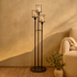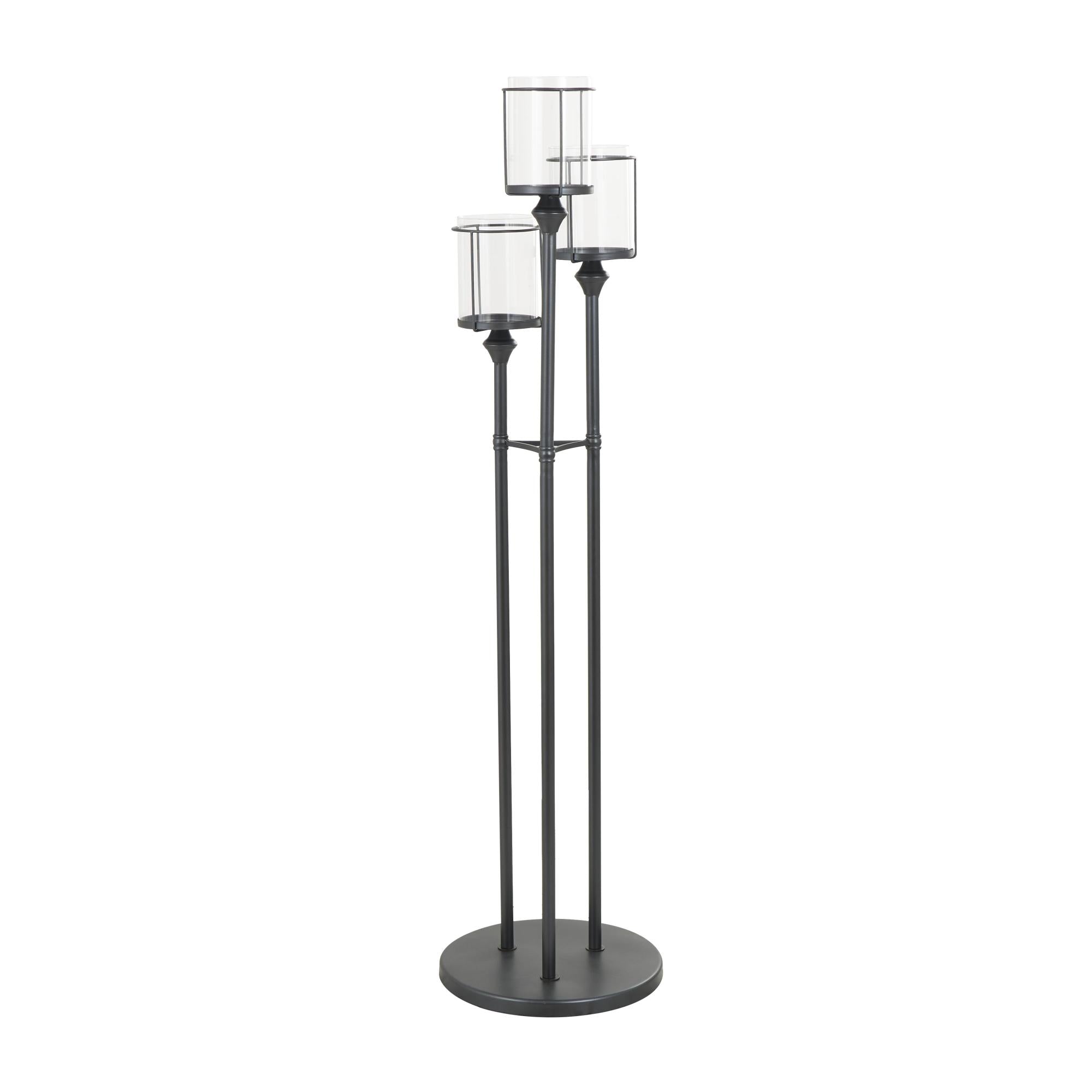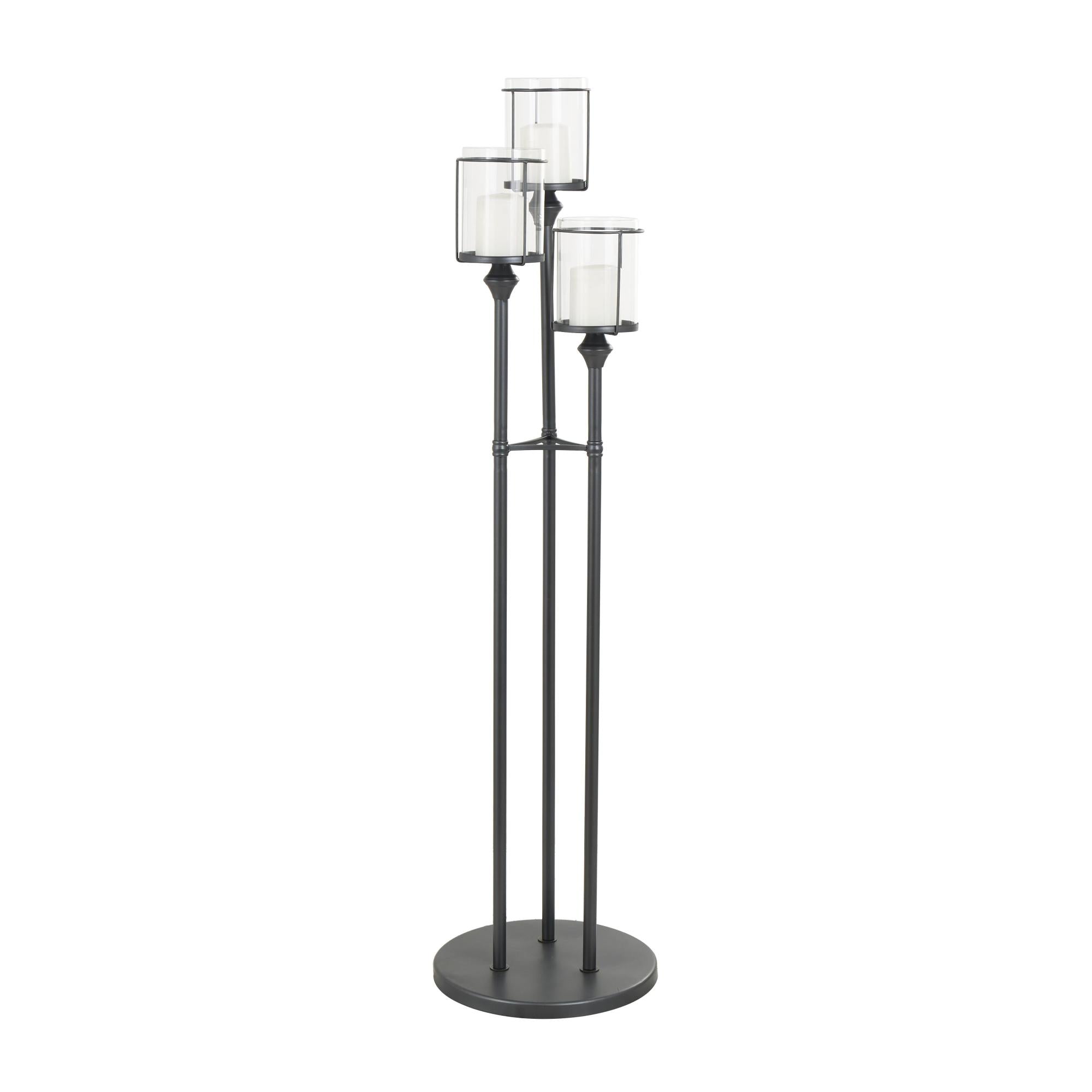 Black Metal Tall Floor Room Hurricane Lamp with 3 Posts and Round Base