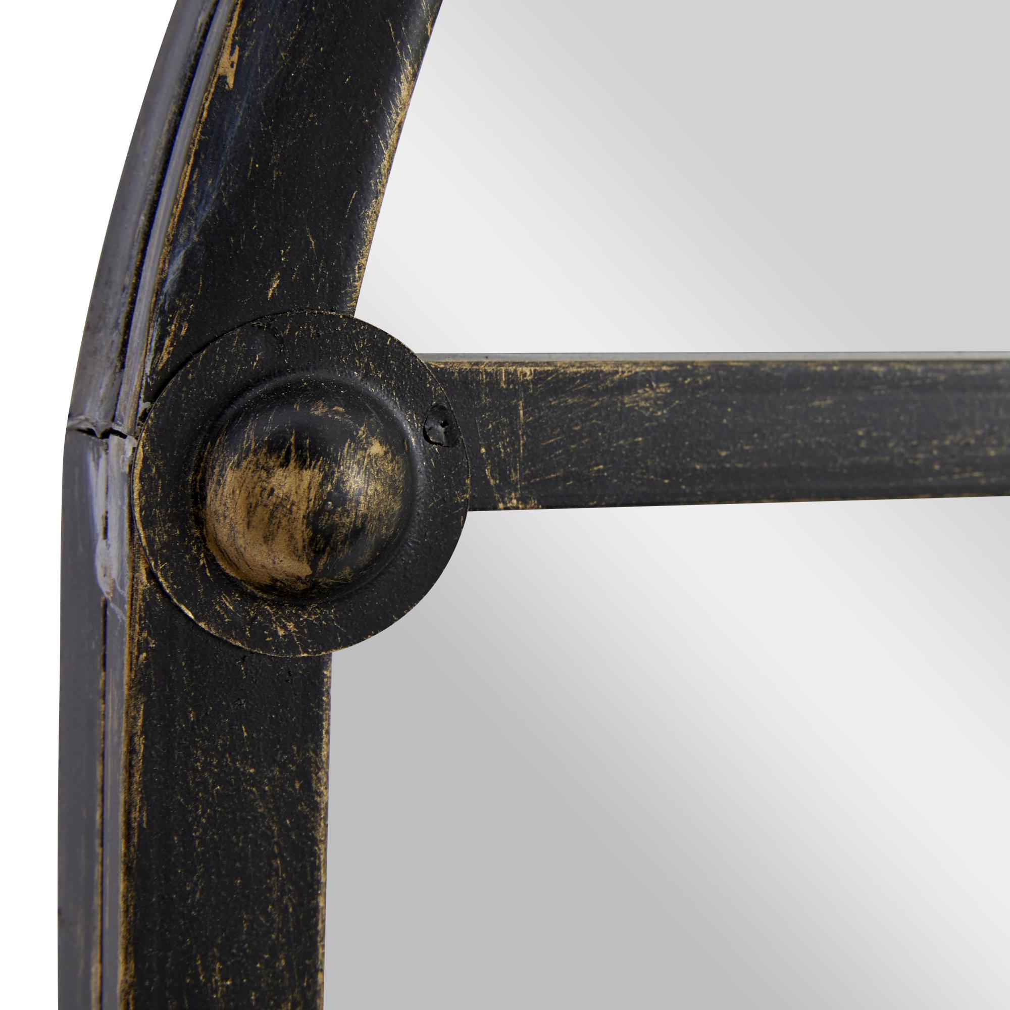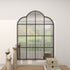 •This matte mirror for wall showcases an arched and rectangular window panes with durable iron framing