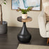 Black Teak Wood Handmade Fluted Side End Accent Table with Brown Tabletop