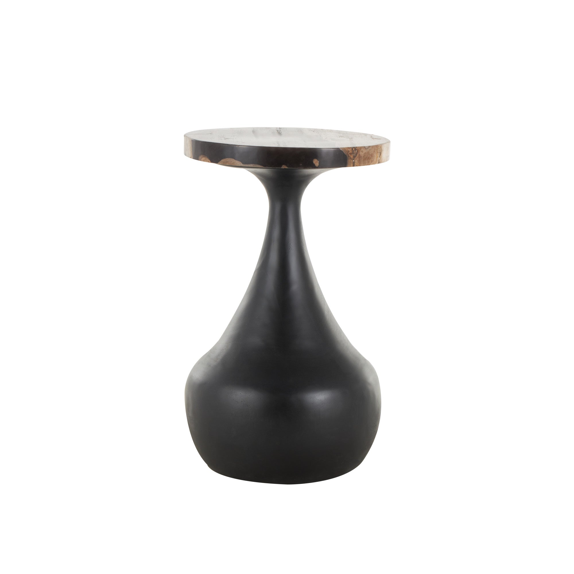 This end table is perfect for living rooms or cozy corners in your home, providing a subtle elegance and versatile style that complements a variety of decor themes. This accent table has a completely finished back. This item ships in 1 carton. Due to the handmade nature of this item, no two will be alike, there will be slight differences in shape, size, and color. Suitable for indoor use only. This item ships fully assembled in one piece. Due to the live edges of the piece, each is unique, so no two products will have an identical pattern, shade, or cut. Maximum weight limit is 100 lbs. Made in Indonesia. This is a single end table. Contemporary style.