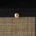 •Matte storage cabinet for room takes on a slim traditional rectangular shape, with the drawer fronts featuring an appealing rattan pattern and round knobs, enhancing the overall sophistication of the piece