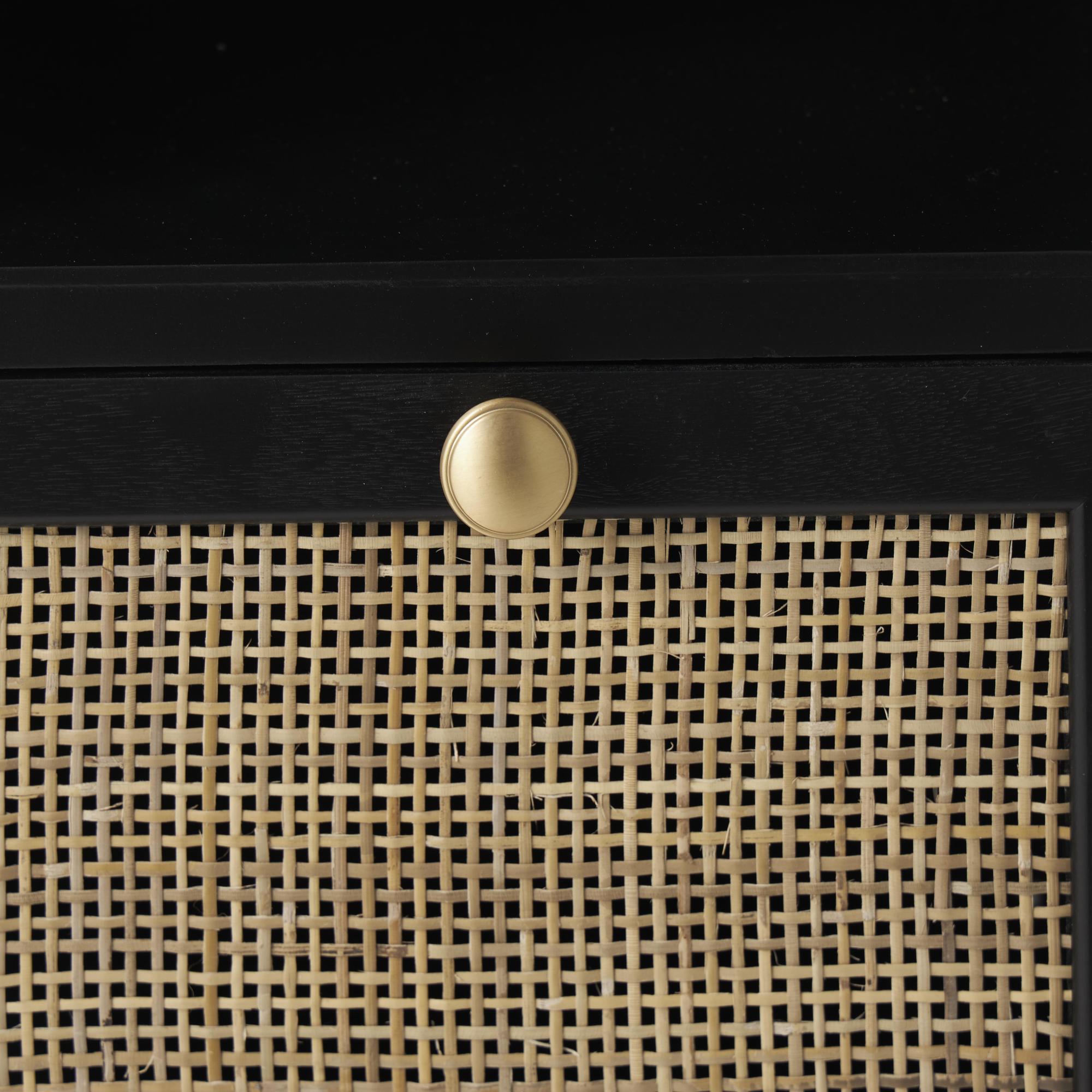 Black Wood 2 Drawer and 3 Shelf Room Cabinet with Rattan Front