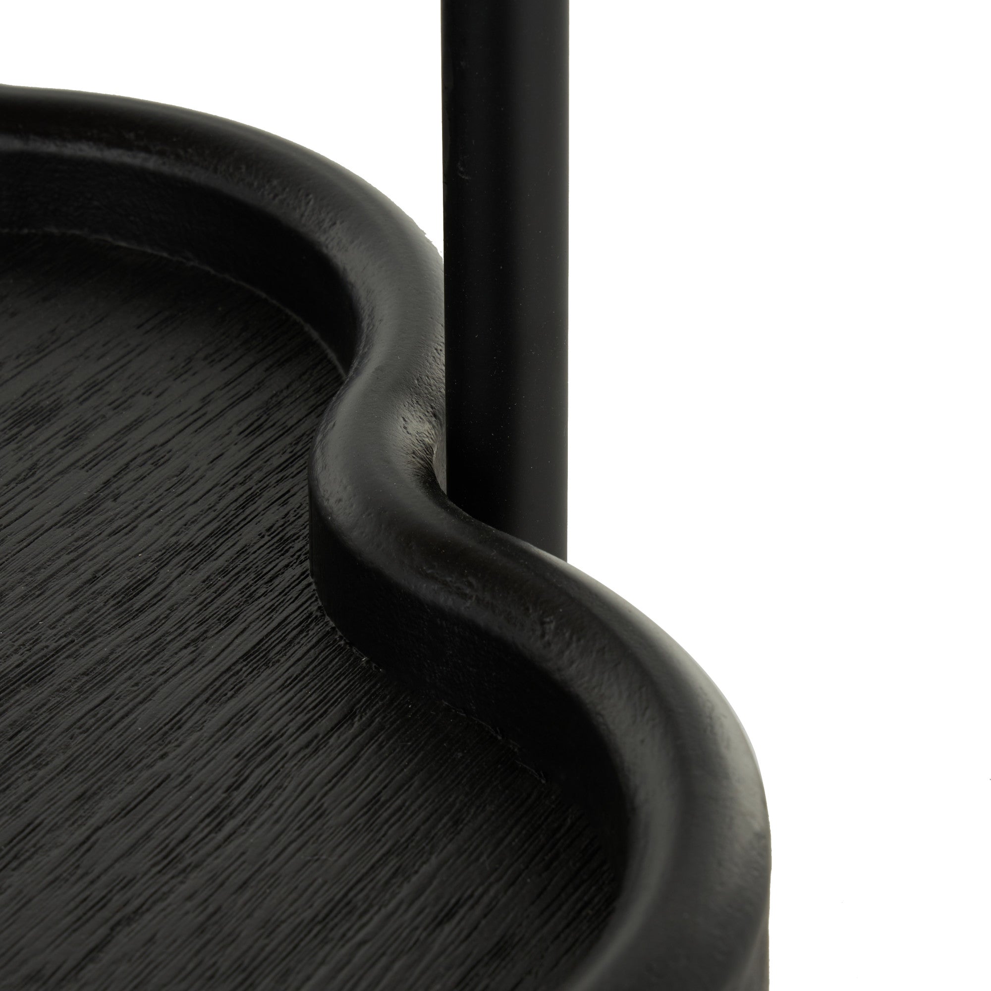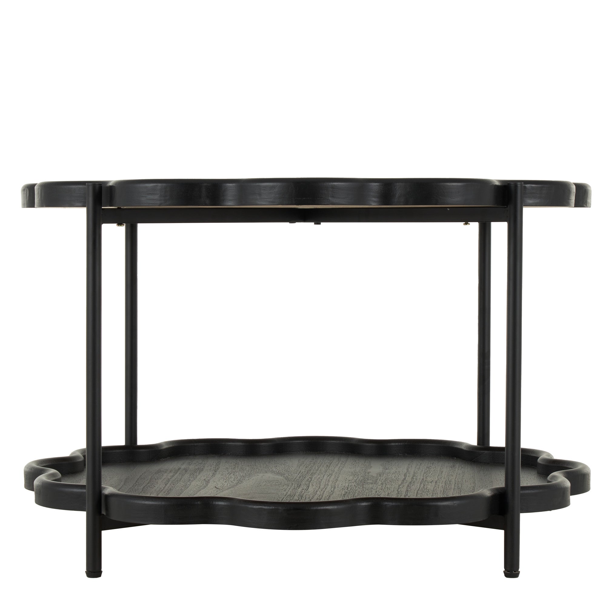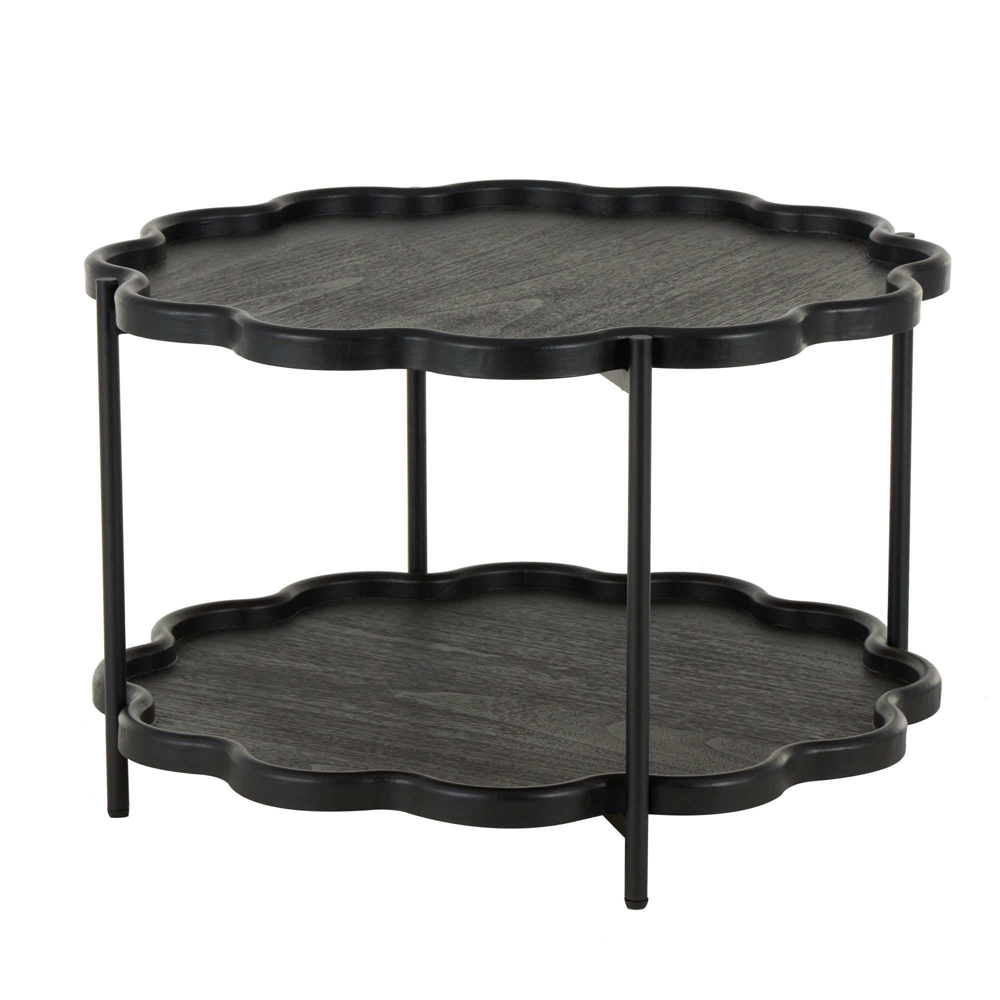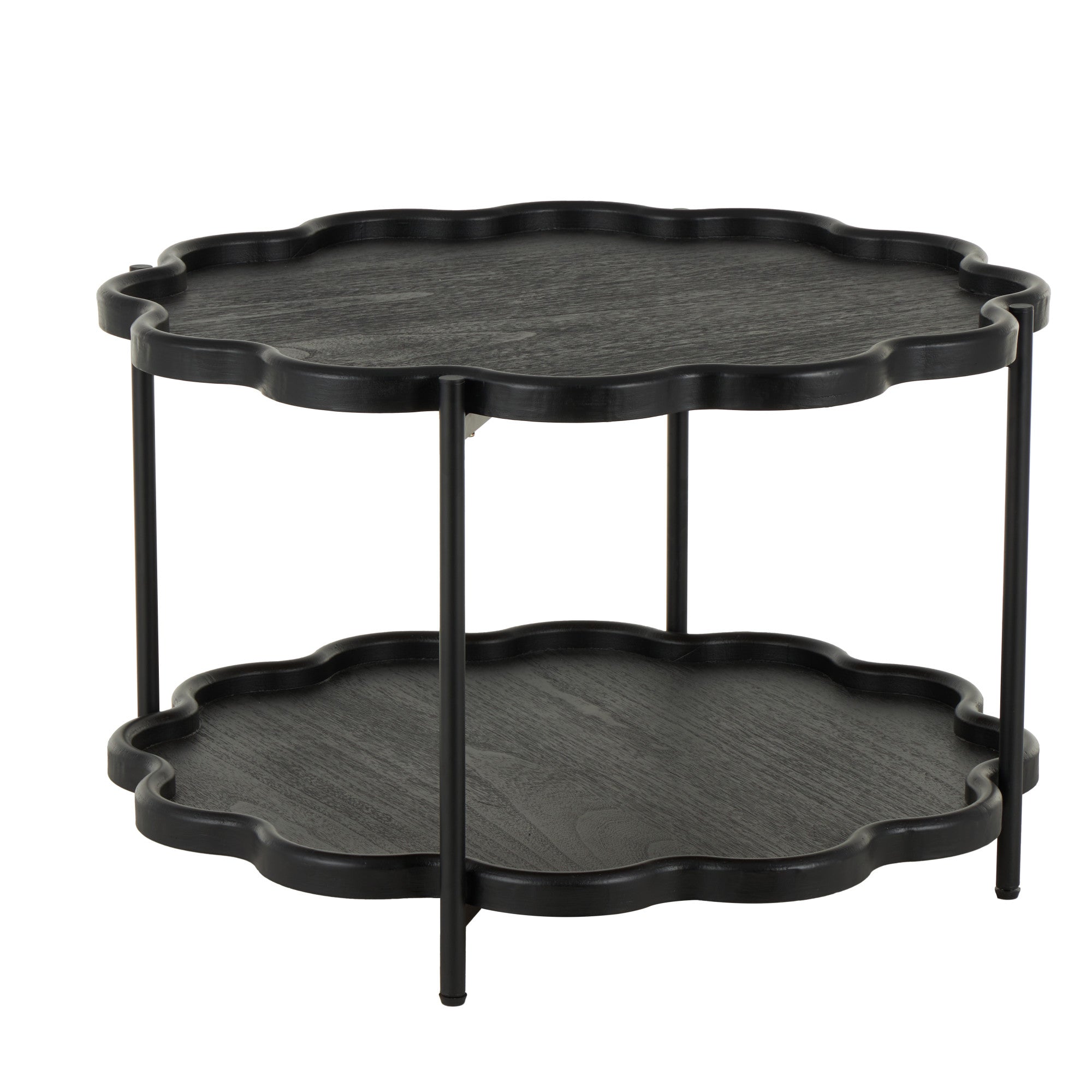 Black Wood Floral Inspired 2 Level Accent Table with Metal Legs