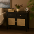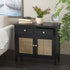 Black Wood Handmade 2 Door and 2 Drawer Room Cabinet with Rattan Front