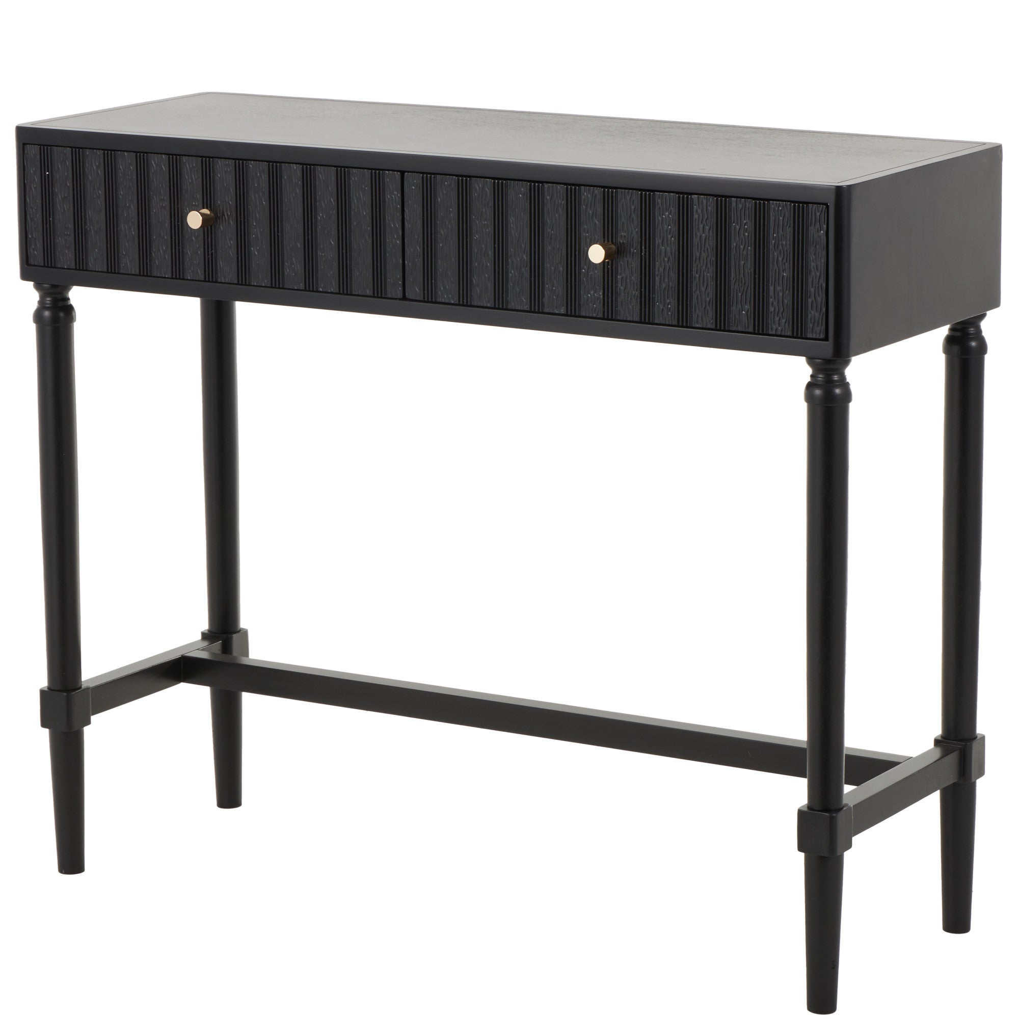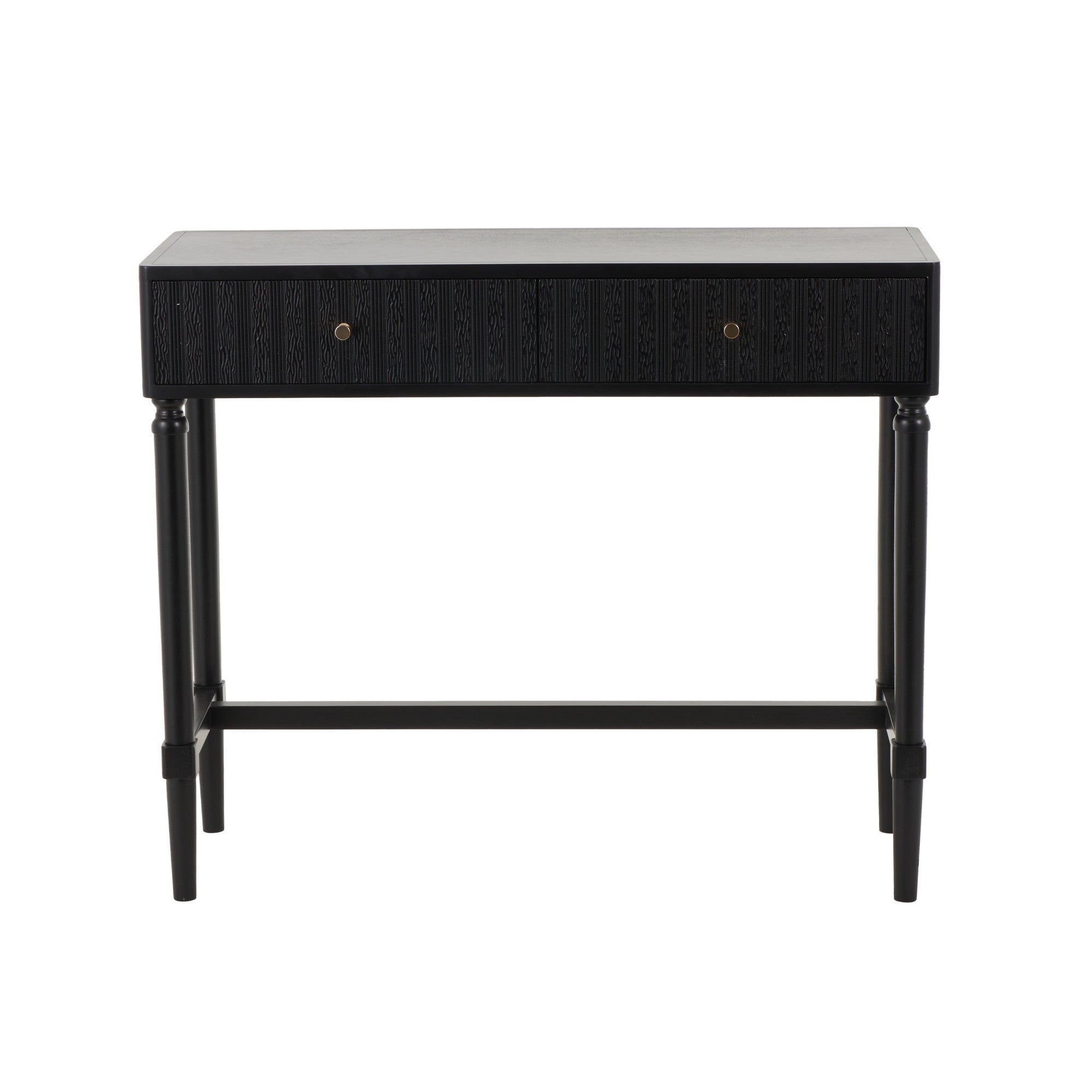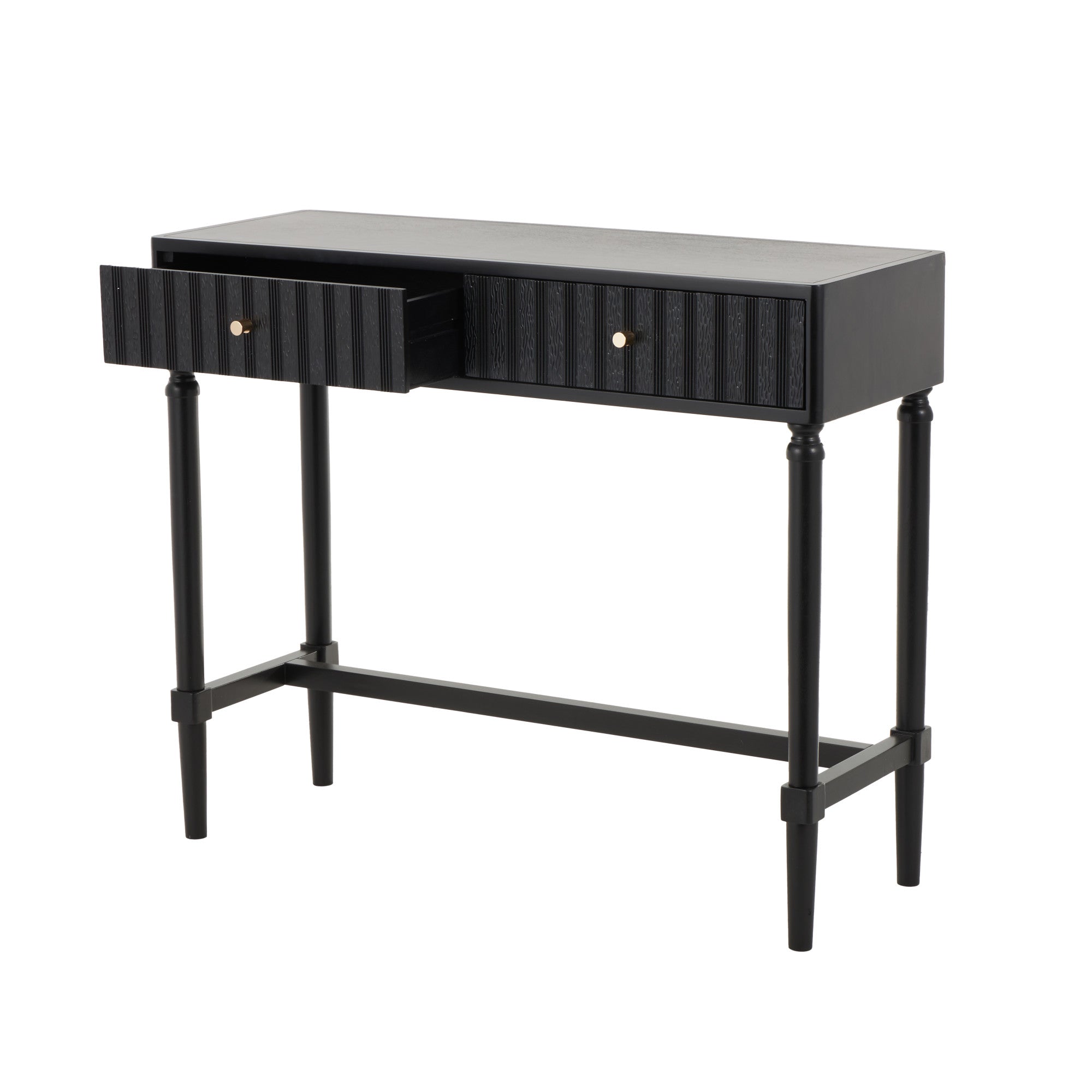 Black Wood Handmade 2 Drawer Living Room Console Table with Gold Handles