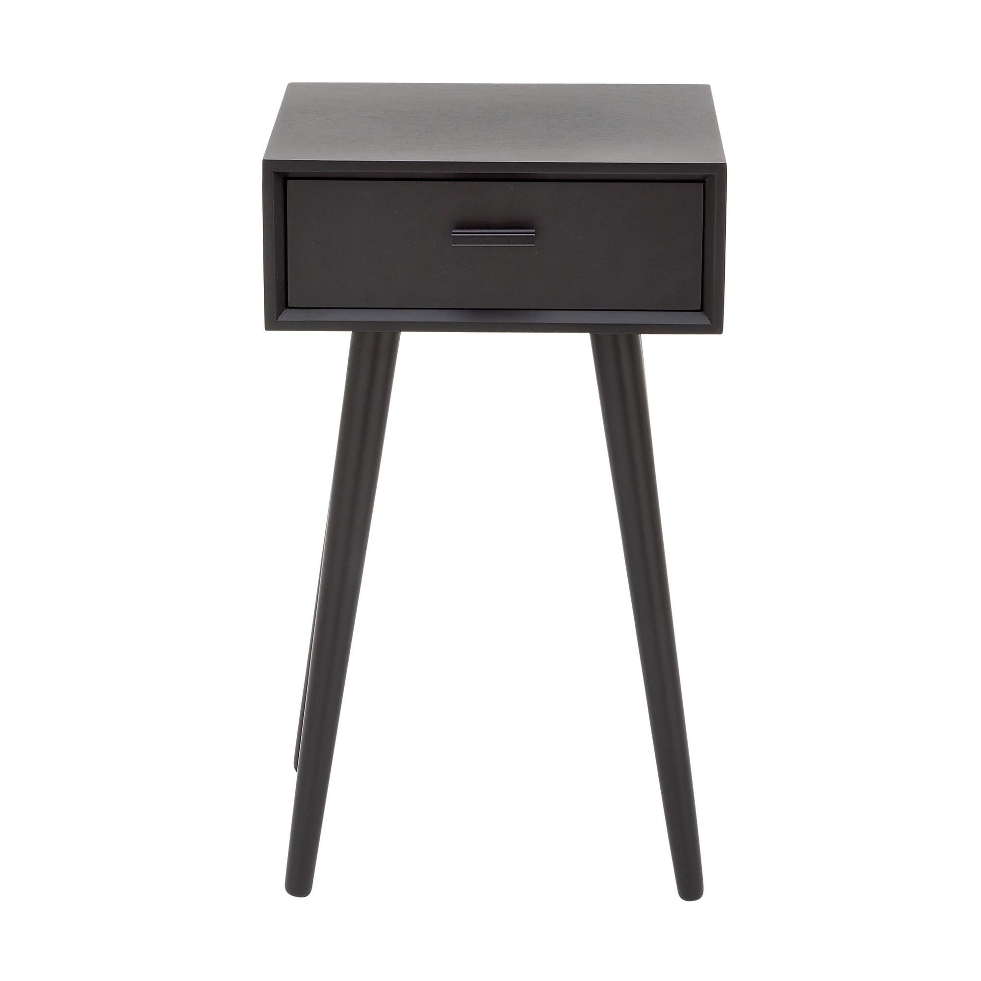 Bring a finishing touch to your home with an inviting appeal with this beautifully crafted accent table. A compact friendly table providing you with additional surface storage space any where in your home. Ideal for versatile use, you can position this end table as a catch-all in your entryway or at the end of your sofa. This accent table has a completely finished back. This item ships in 1 carton. accent table features a single drawer with side wood glide. Suitable for indoor use only. Some assembly required. Maximum weight limit is 100 lbs. This is a single end table. Modern style.