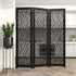 Abstract Black Mango Wood Wavy Cutout 3 Panel Partition Room Divider Screen