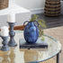 •Smooth curves create a round bottle shape with rounded handles at the top, while the cross-hatched, semi-glossy paint finish creates a denim texture throughout this polished vase for dried flowers