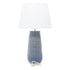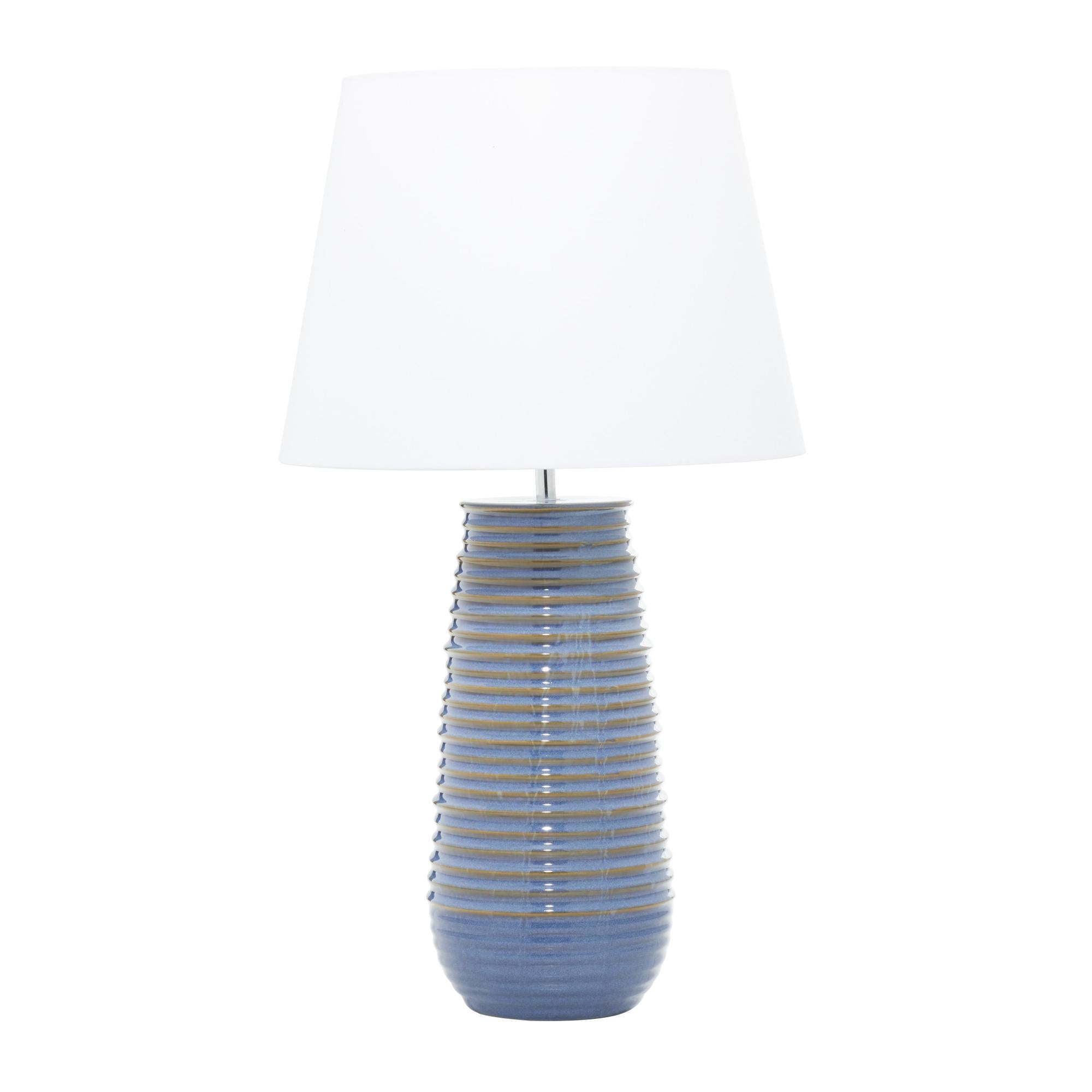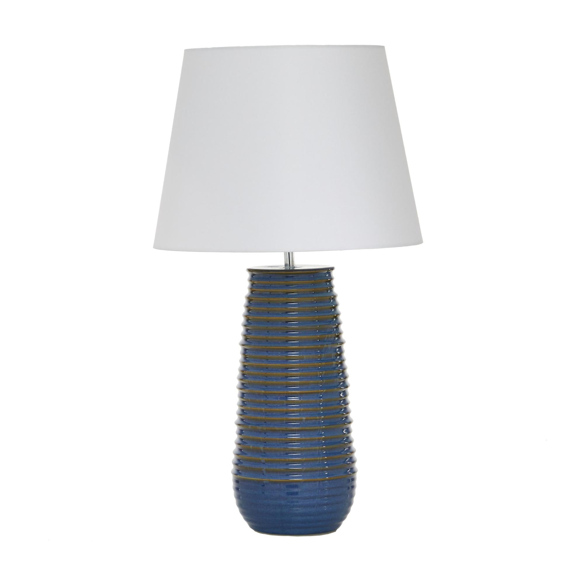 Blue Ceramic Ribbed Room Table Lamp with Drum Shade