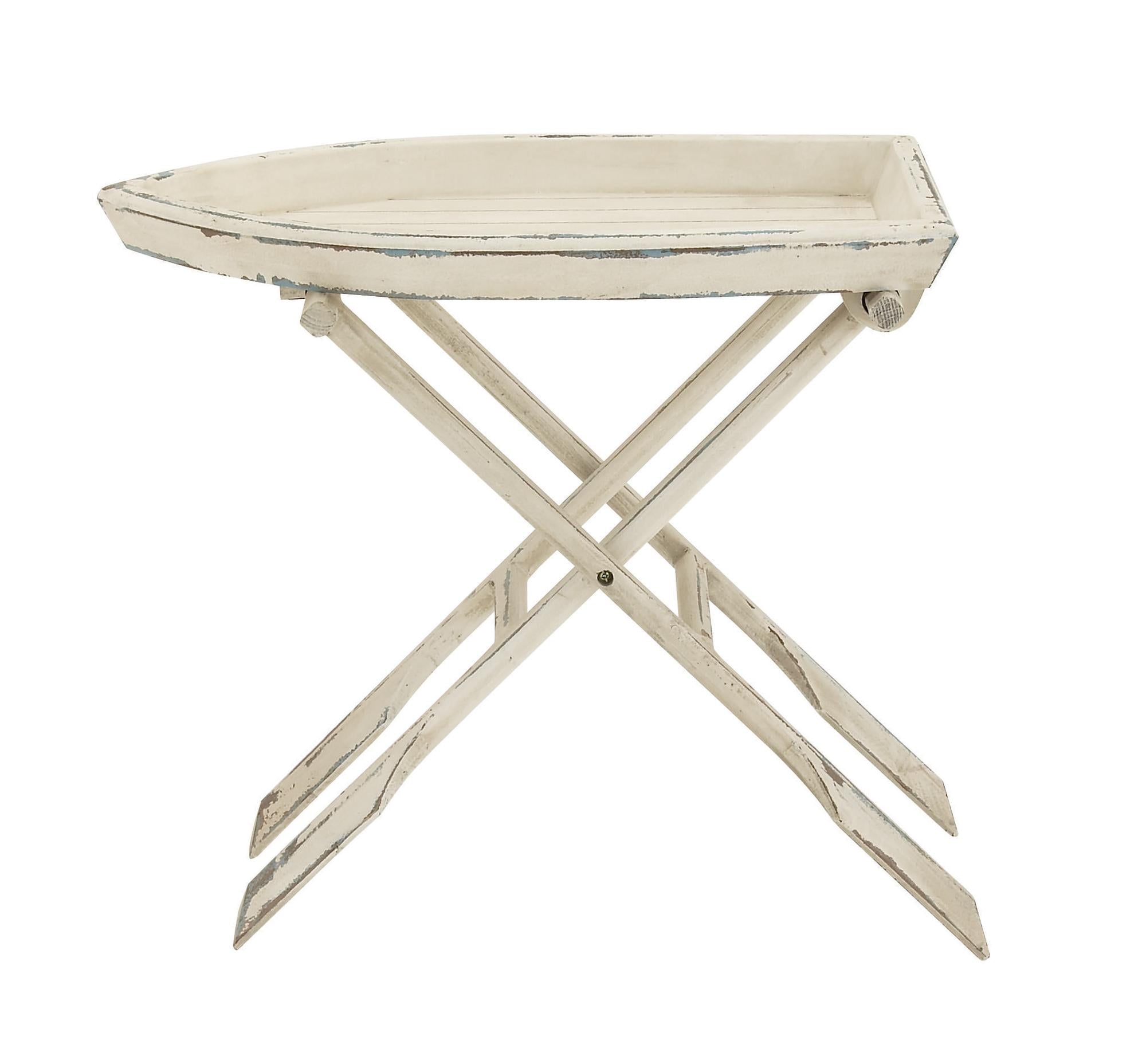 Boat White Wood Tray Top Side End Accent Table with Oar Inspired Legs