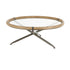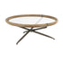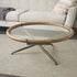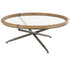 Brass Metal Round Living Room Coffee Table with Brown Wooden Framed Glass Tabletop
